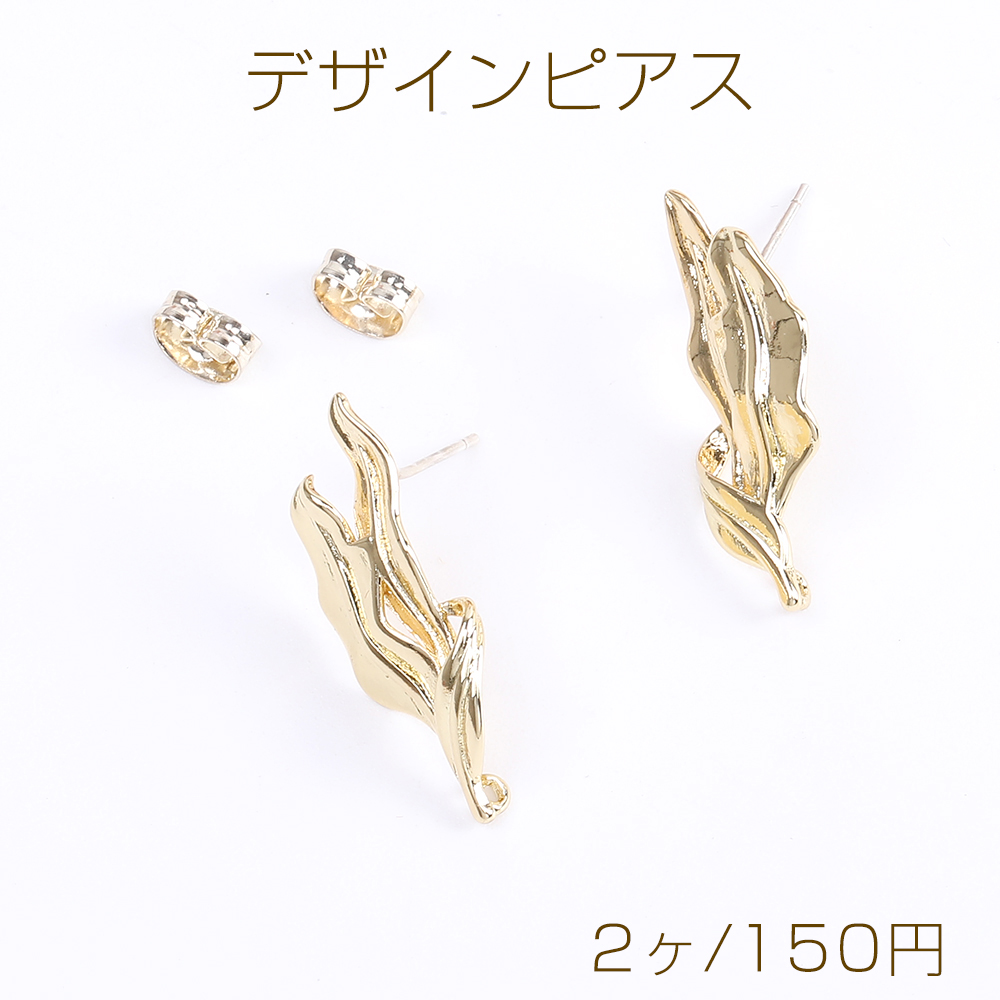 高品質デザインピアス リーフ カン付き 11×26mm ゴールド(2ヶ)