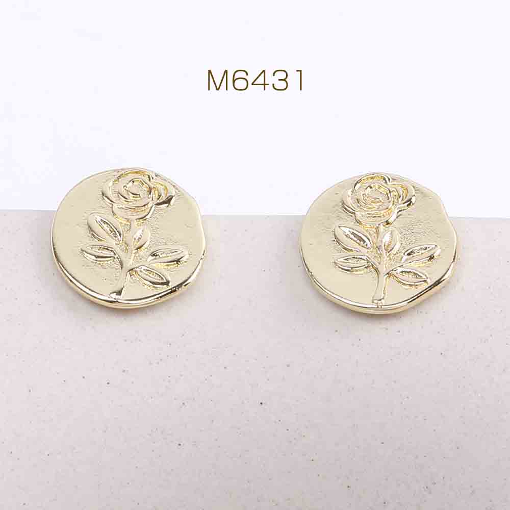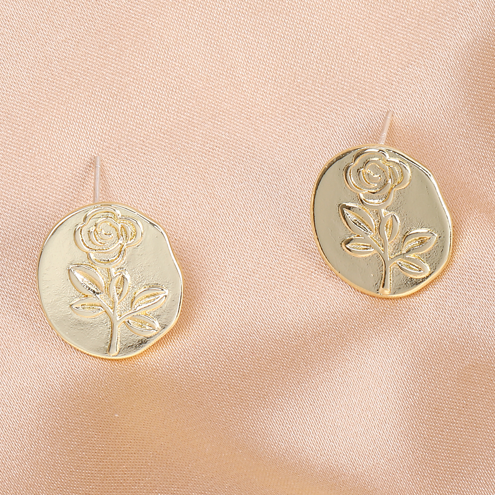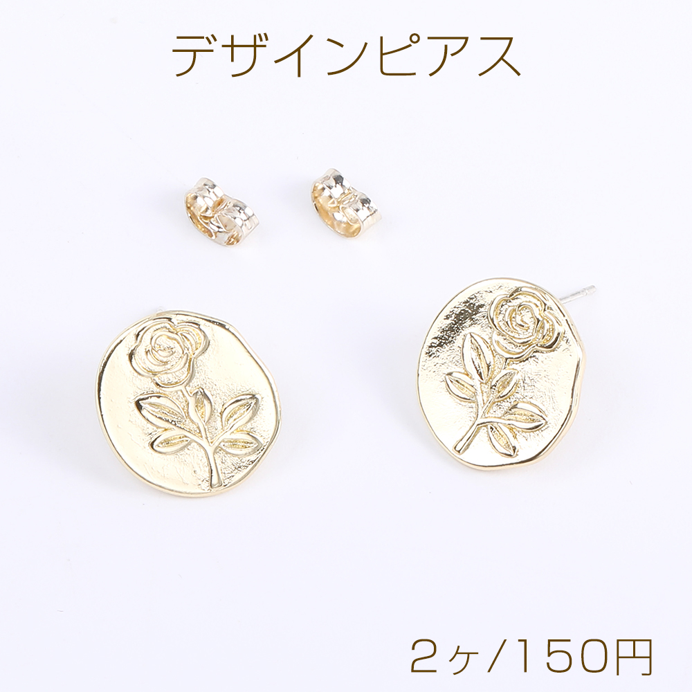 高品質デザインピアス オーバル フラワーの模様 15×16mm ゴールド(2ヶ)