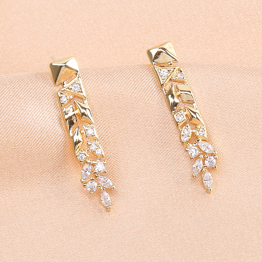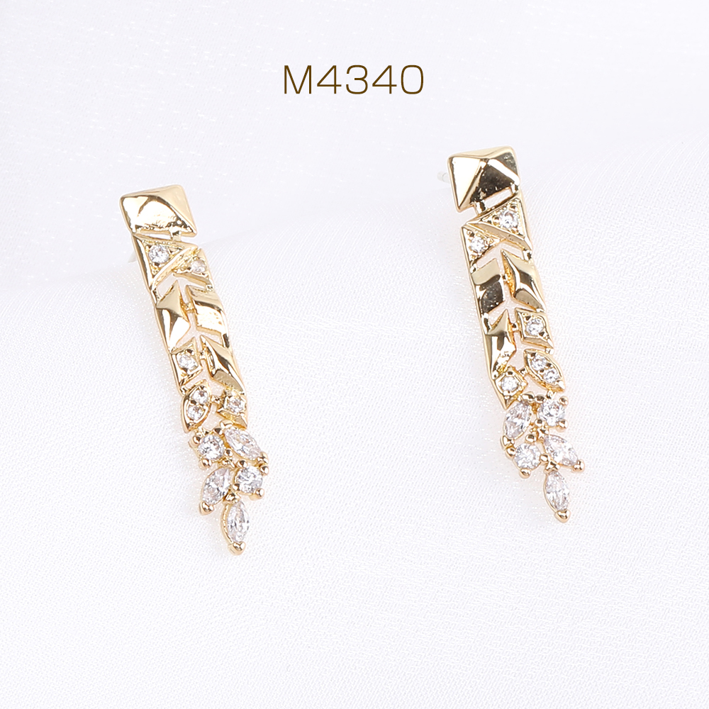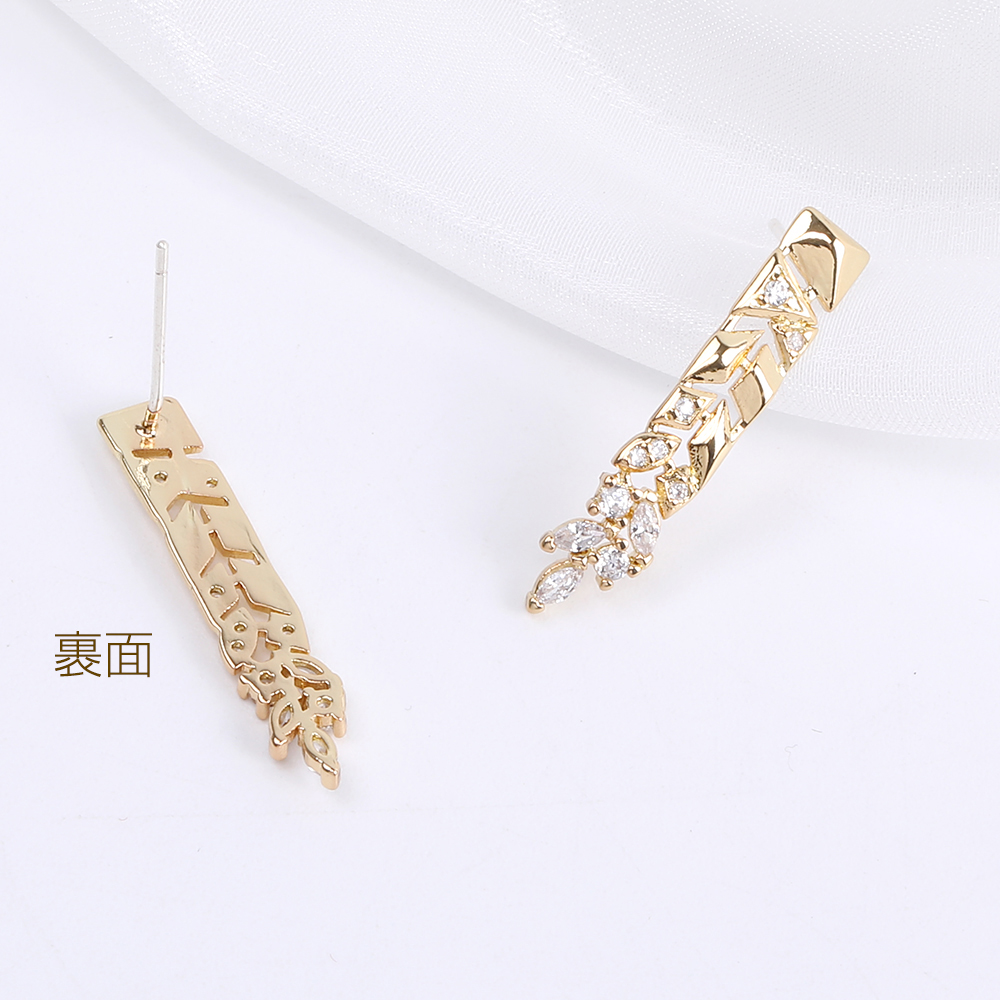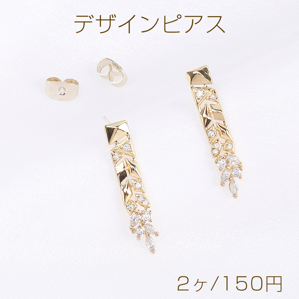 高品質デザインピアス リーフ ジルコニア付き 4×26mm ゴールド(2ヶ)