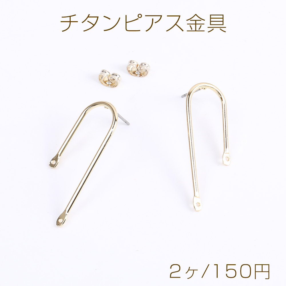 チタンピアス金具 U字型 2カン付き 13×37mm ゴールド(2ヶ)