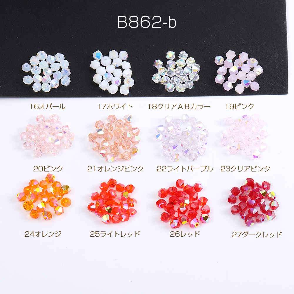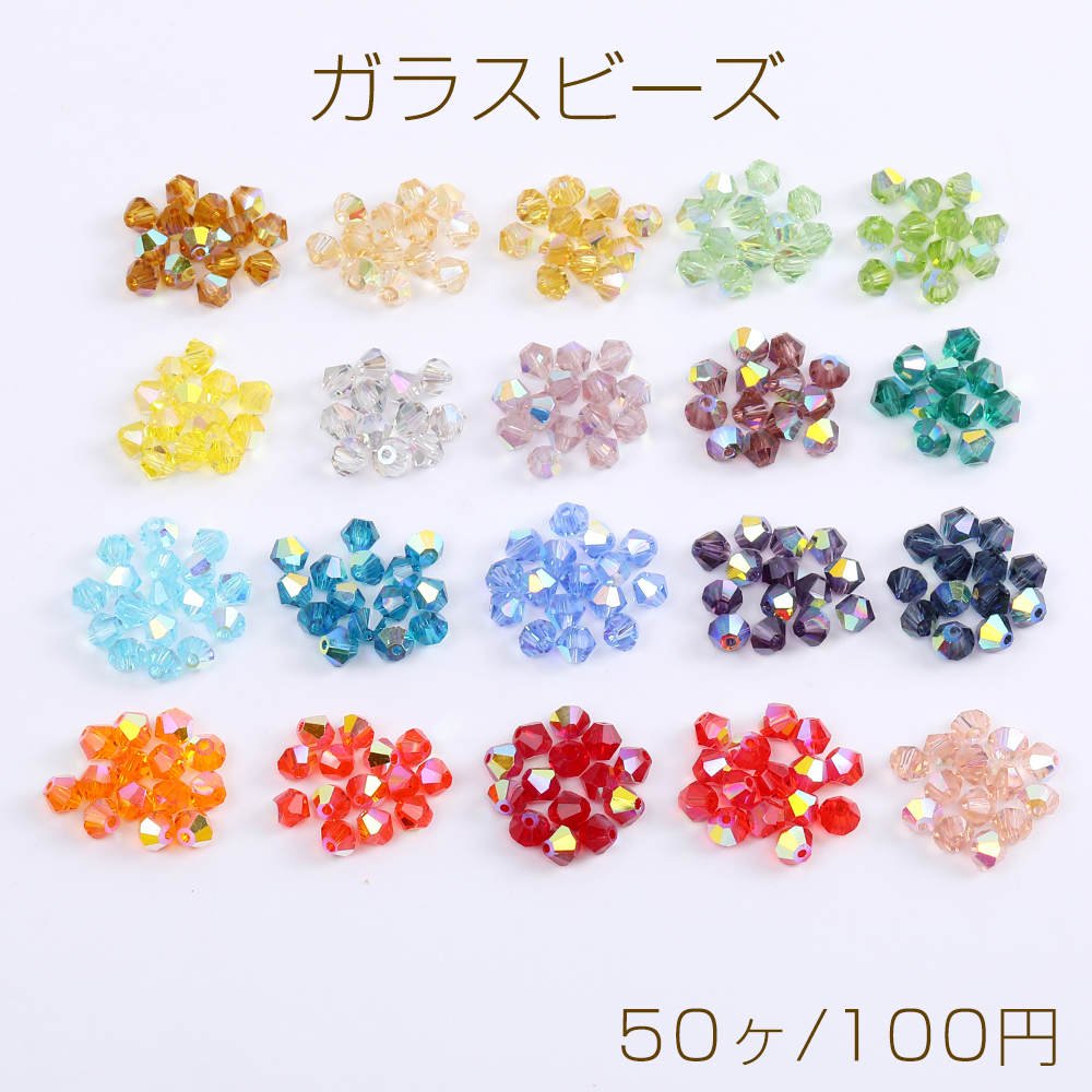 ガラスビーズ ガラスクリアビーズ ソロバンカット 4mm ABカラー No.16-27(50ヶ)