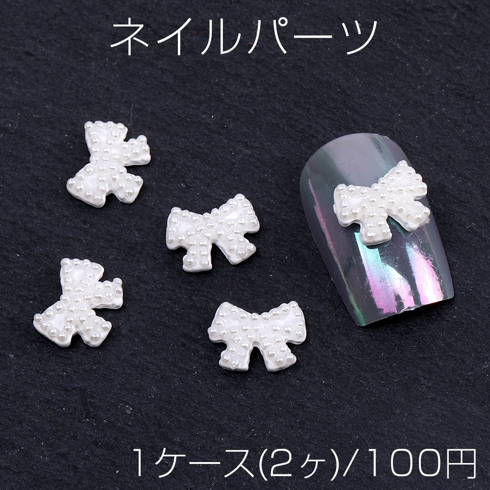 ネイルパーツ メタルパーツ パール リボン 8×10mm ホワイト(1ケース)