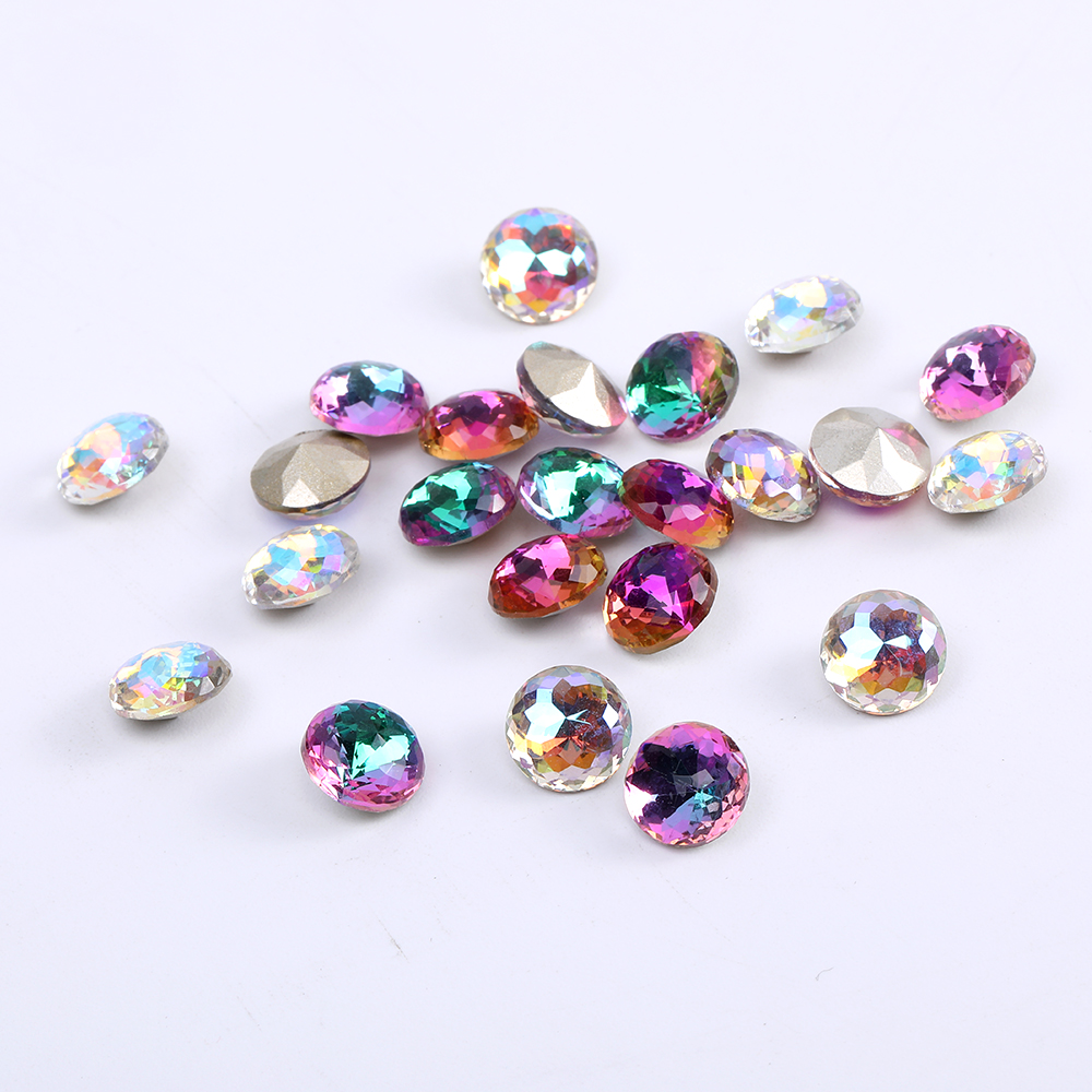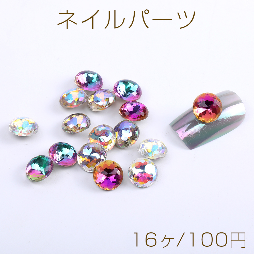 ネイルパーツ ラインストーン Vカット ラウンド 8mm 混色4色/各約4ヶ(16ヶ)