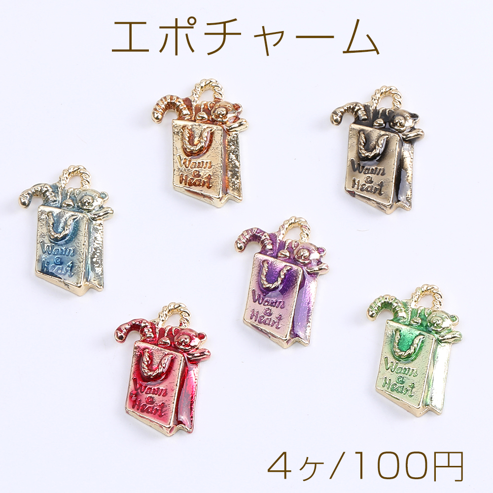 エポチャーム メタルチャーム プレゼント袋チャーム ゴールド 13×20mm(4ヶ)