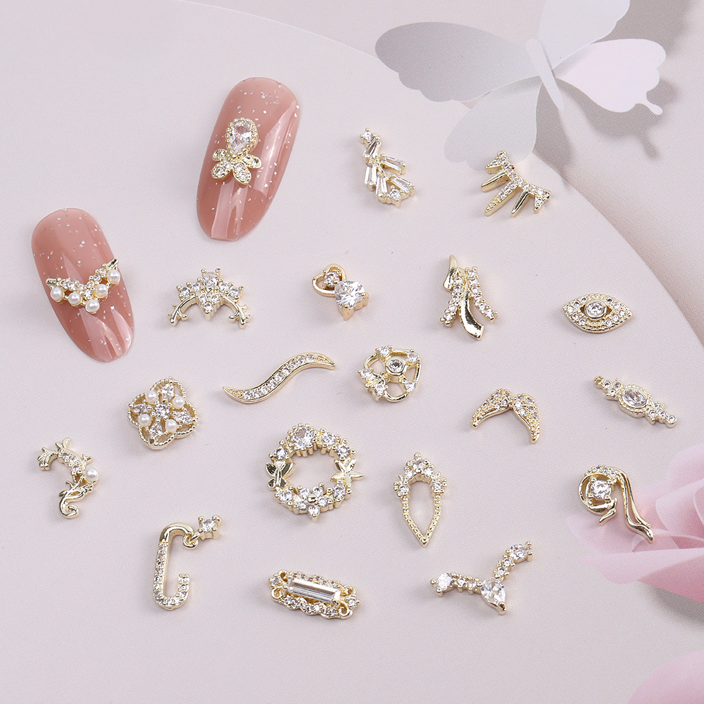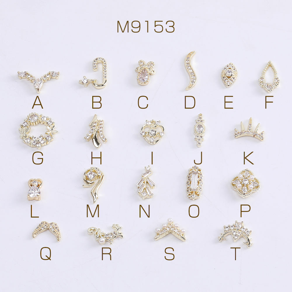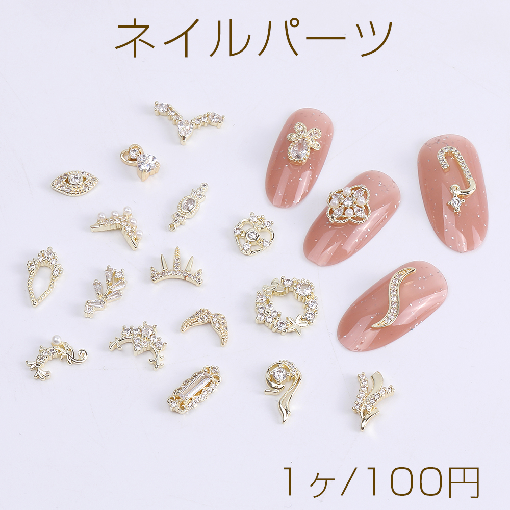 高品質ネイルパーツ メタルパーツ 全20種 ジルコニア付き ゴールド