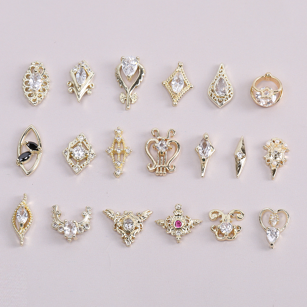 高品質ネイルパーツ メタルパーツ 全19種 ジルコニア付き ゴールド