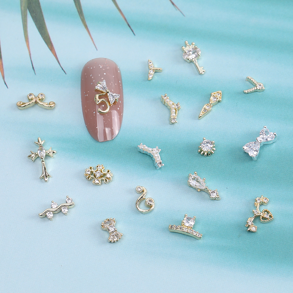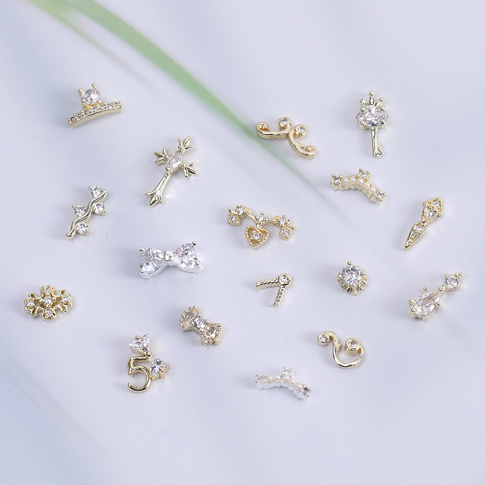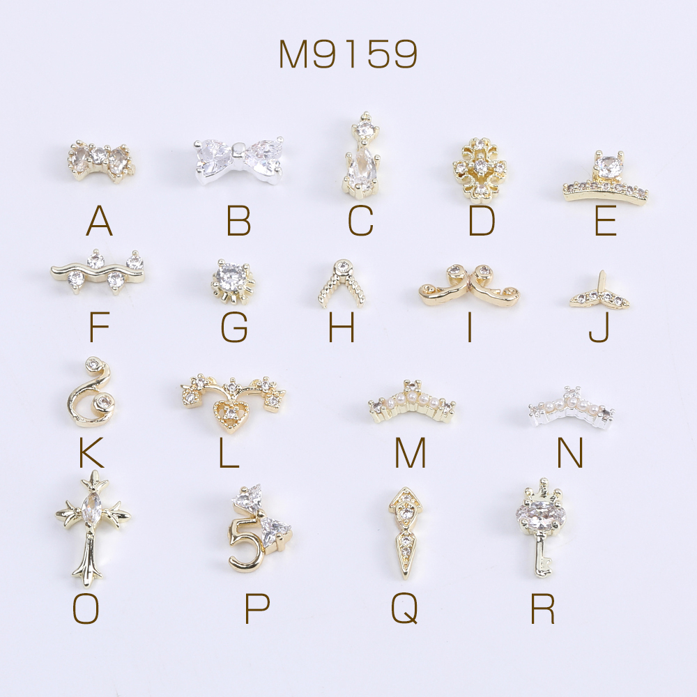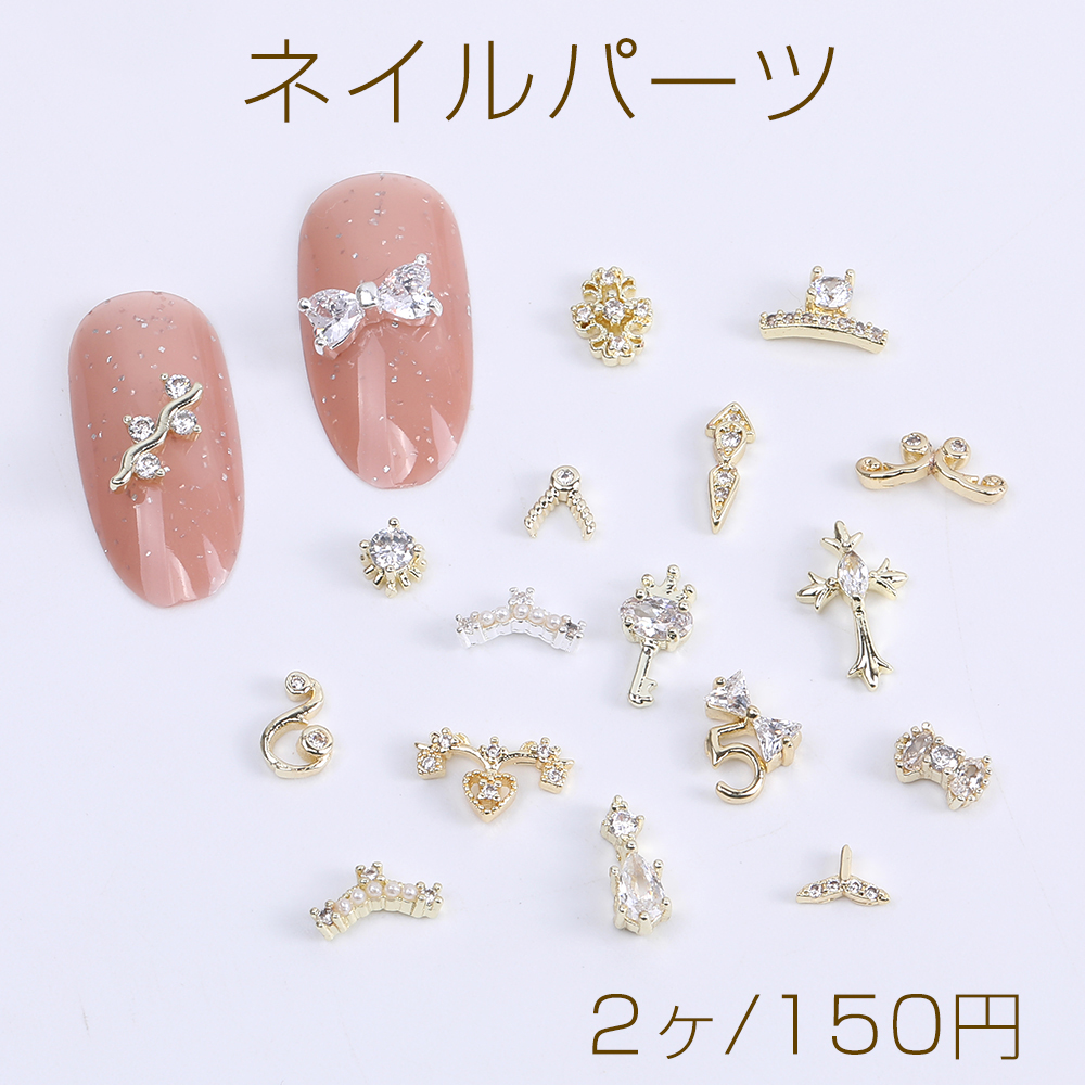 高品質ネイルパーツ メタルパーツ 全18種 ジルコニア付き ゴールド シルバー
