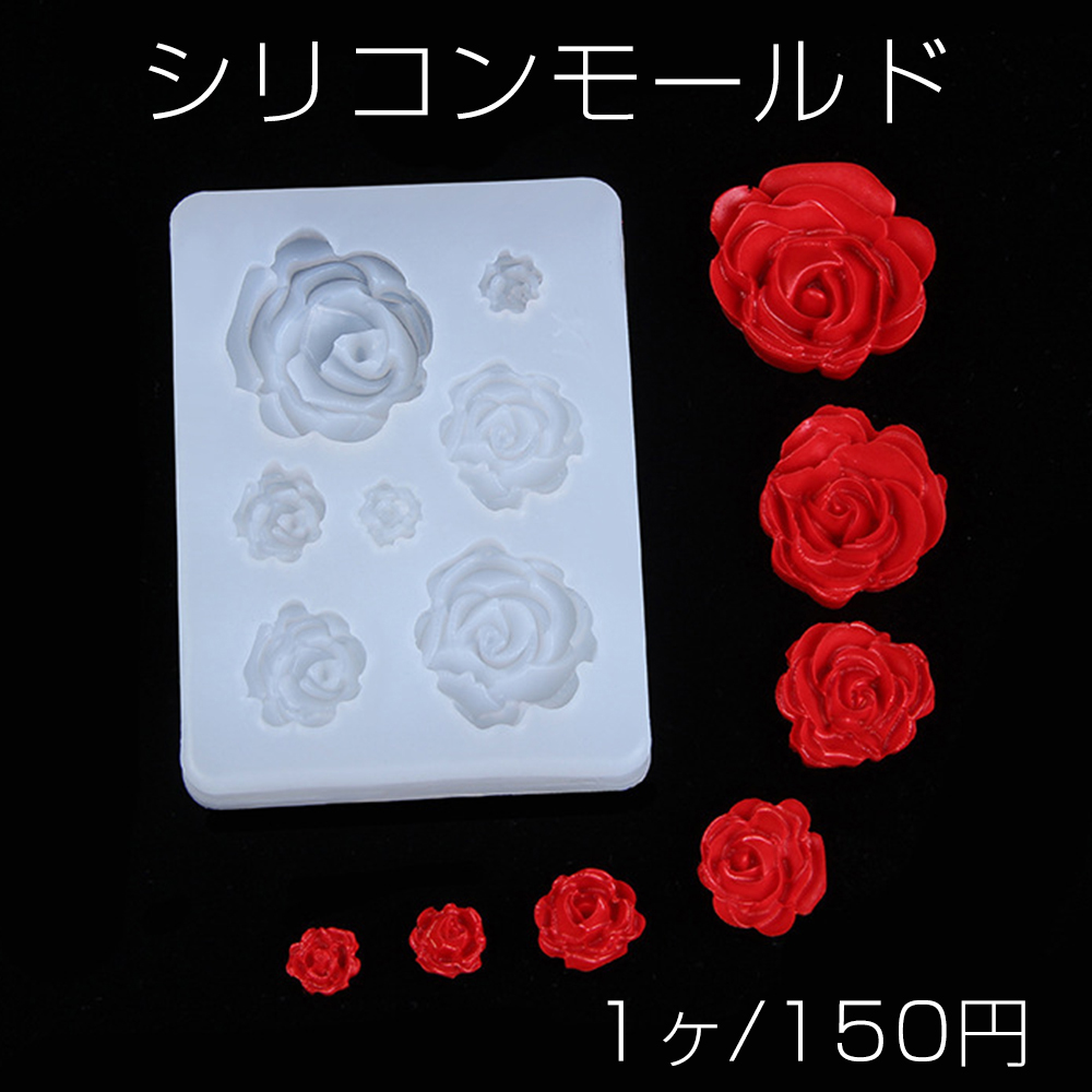 シリコンモールド レジンモールド フラワー バラ 58×82mm(1ヶ)