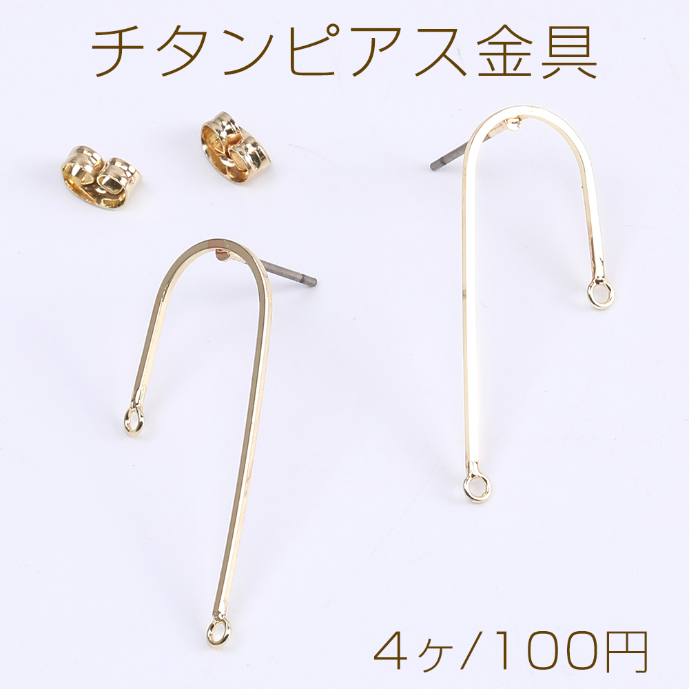 チタンピアス金具 U字型 2カン付き 12×33mm ゴールド(4ヶ)