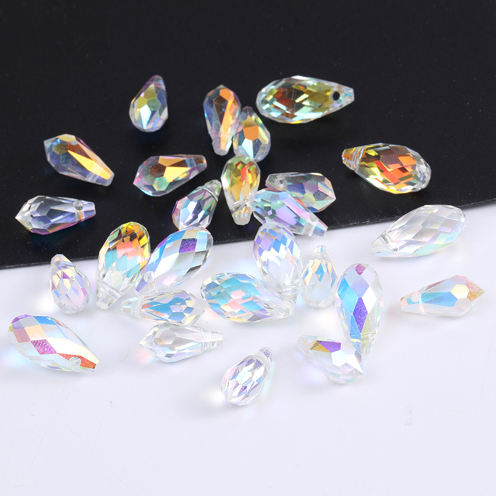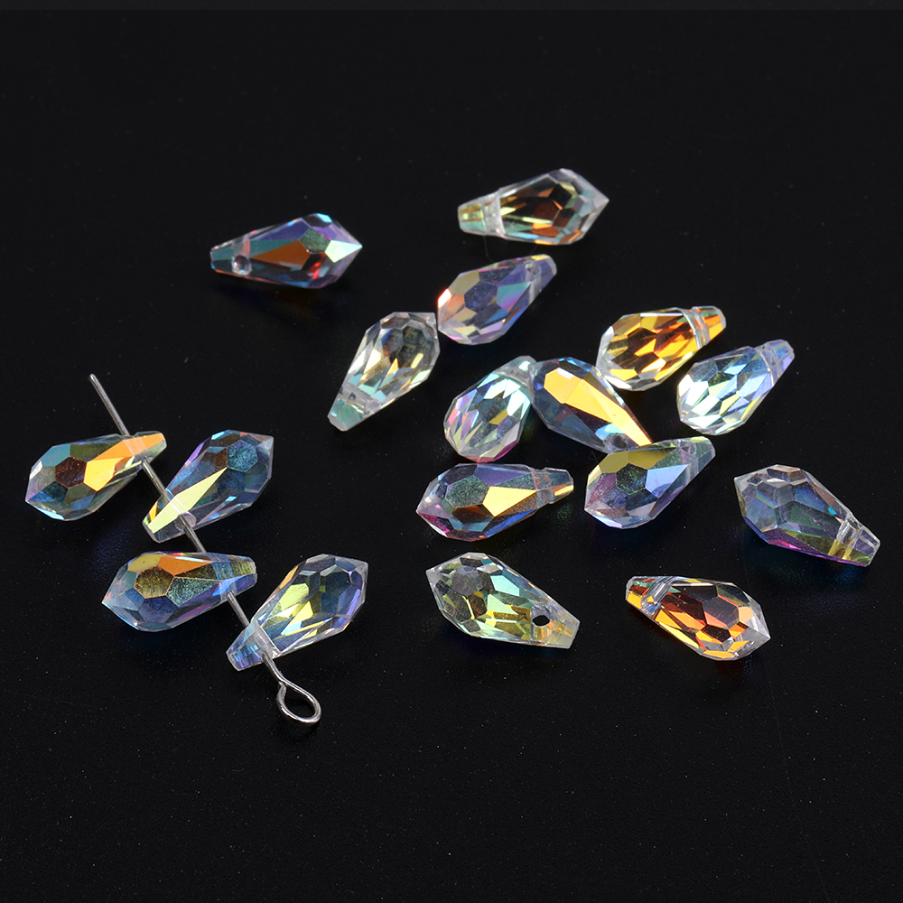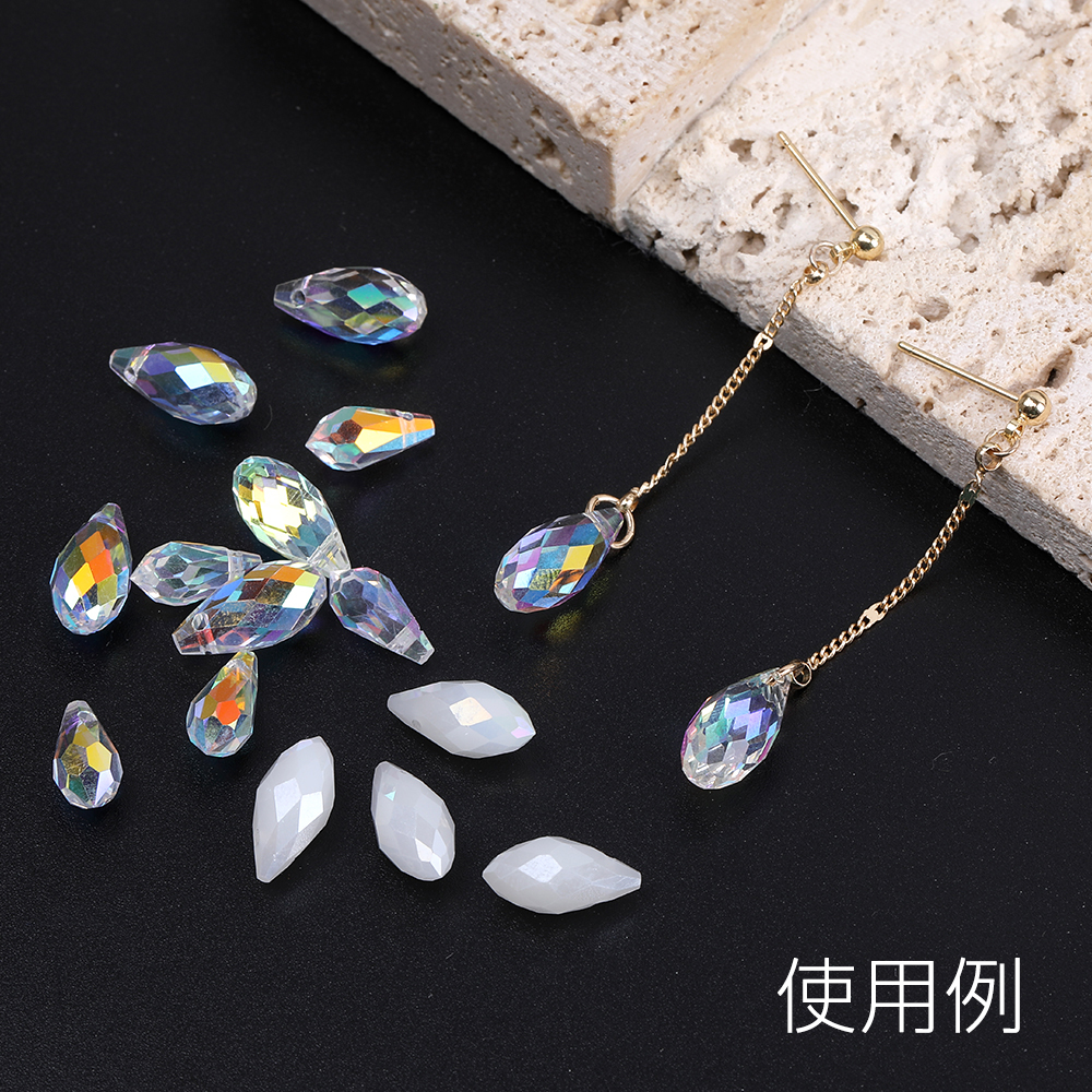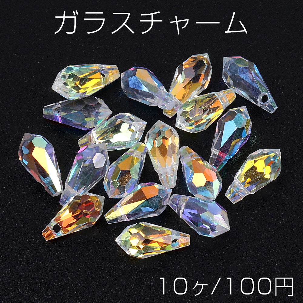 ガラスチャーム しずく型カット 横穴 5×11mm ABカラー(10ヶ)