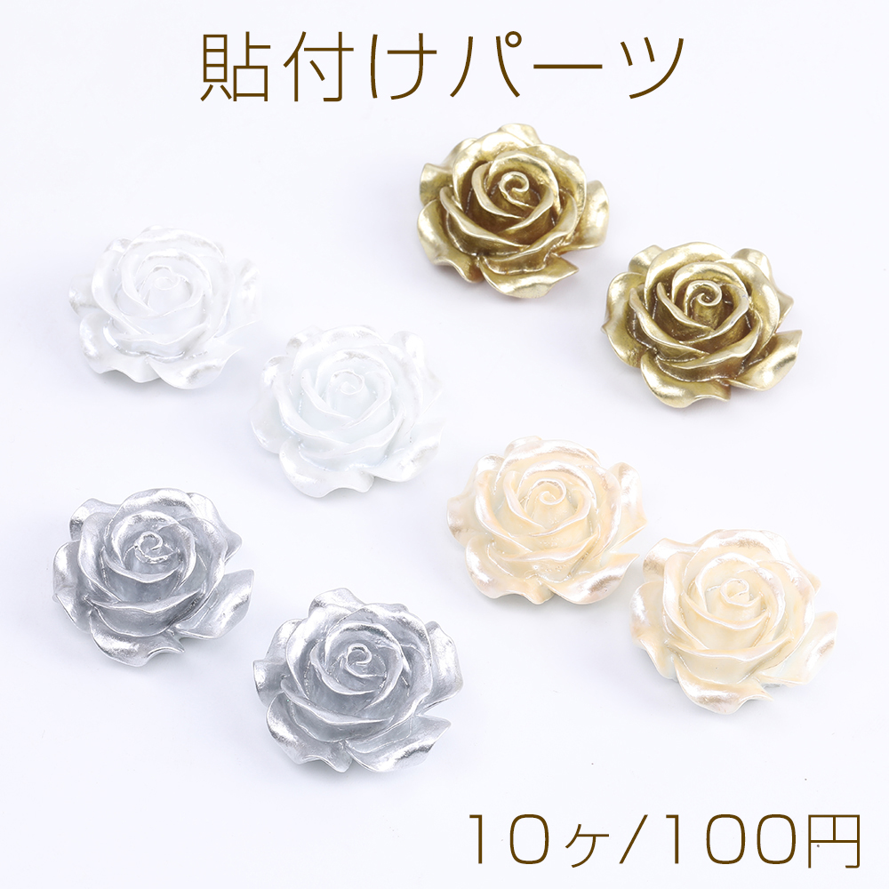 貼付けパーツ 樹脂貼付けパーツ 樹脂カボション フラワー バラ 25mm(10ヶ)
