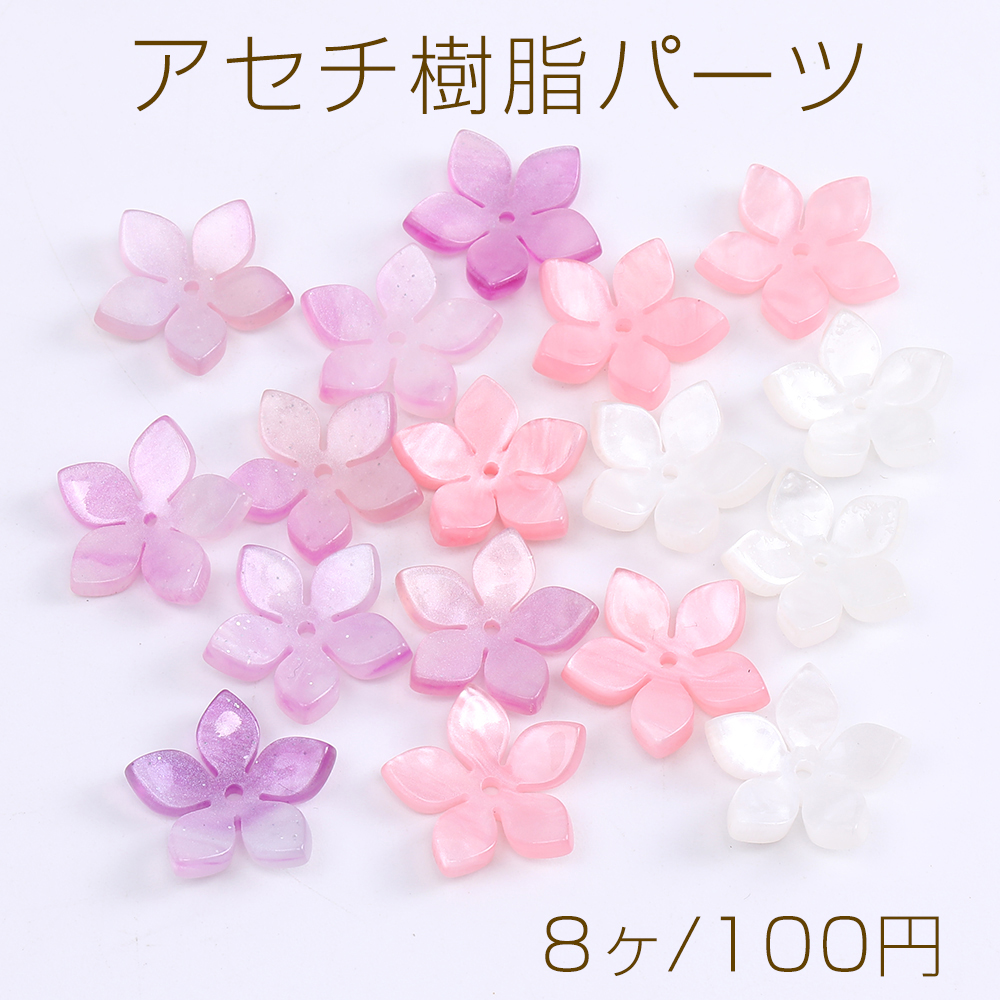 高品質アセチ樹脂パーツ フラワー 五弁花 穴あり 16.5mm(8ヶ)