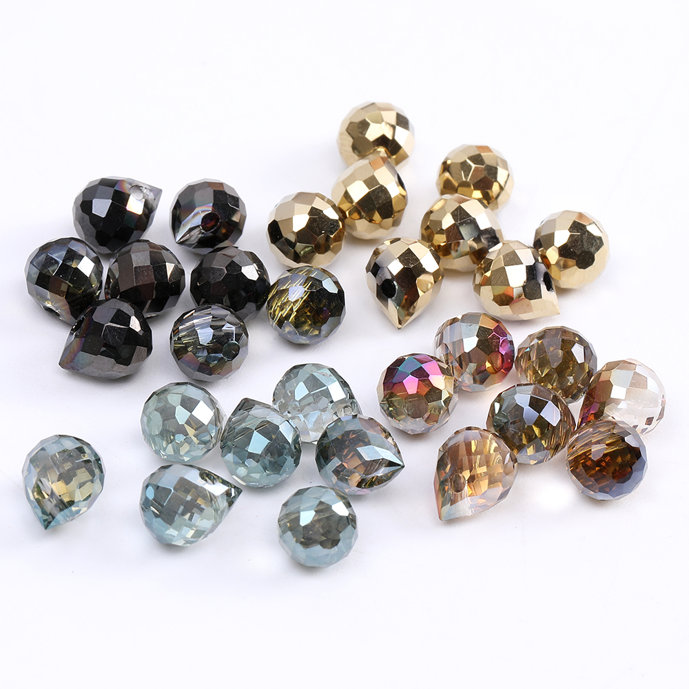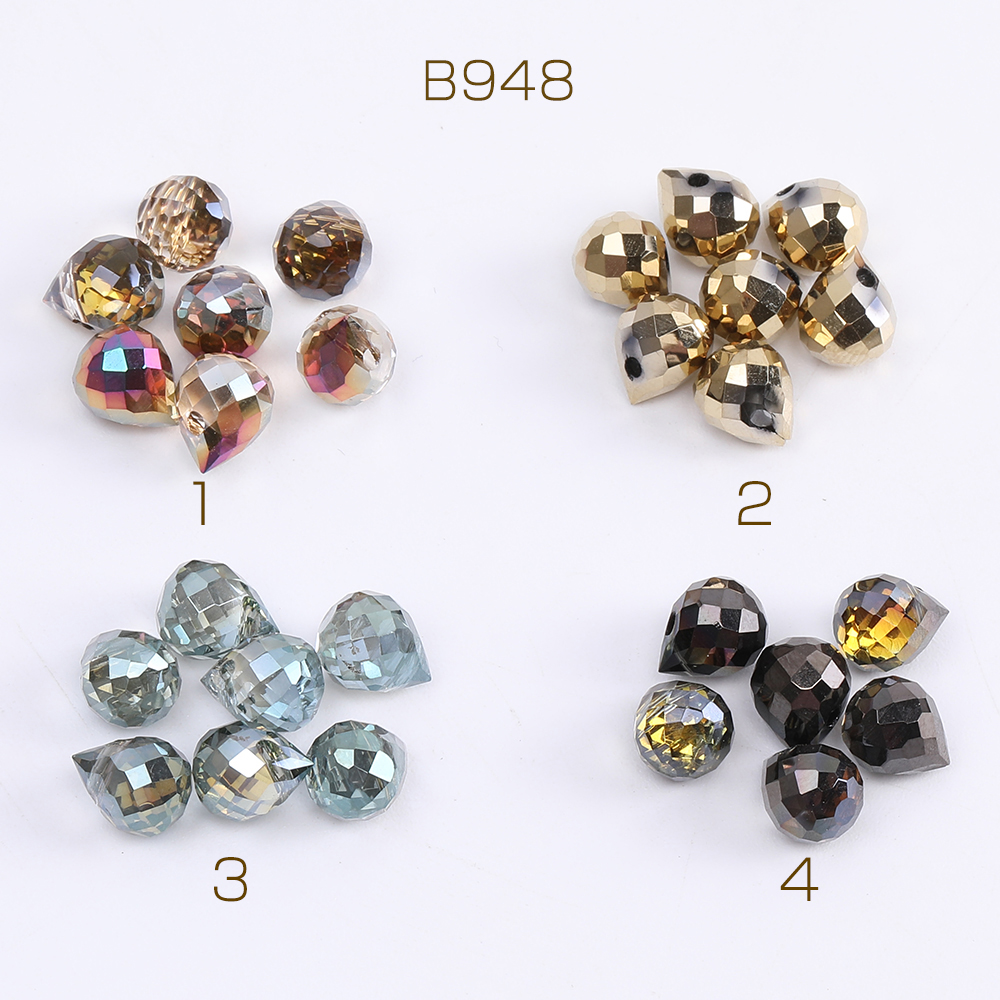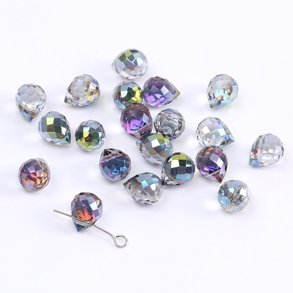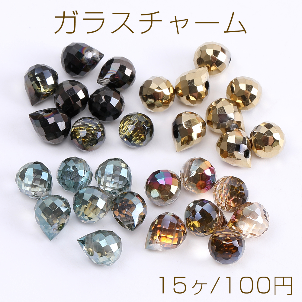 メッキガラスチャーム しずく型カット 横穴 6×7.5mm