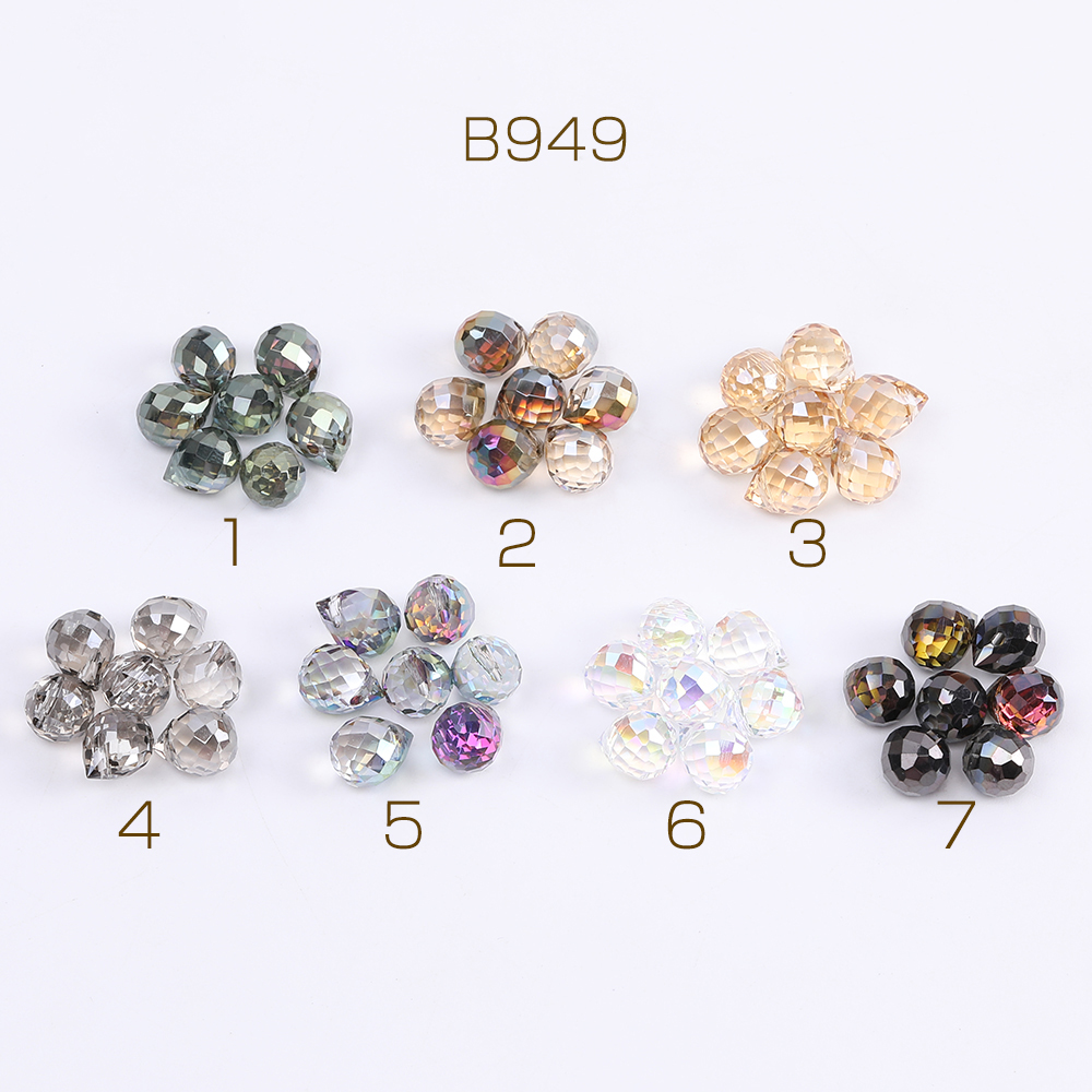 メッキガラスチャーム しずく型カット 横穴 8×10mm
