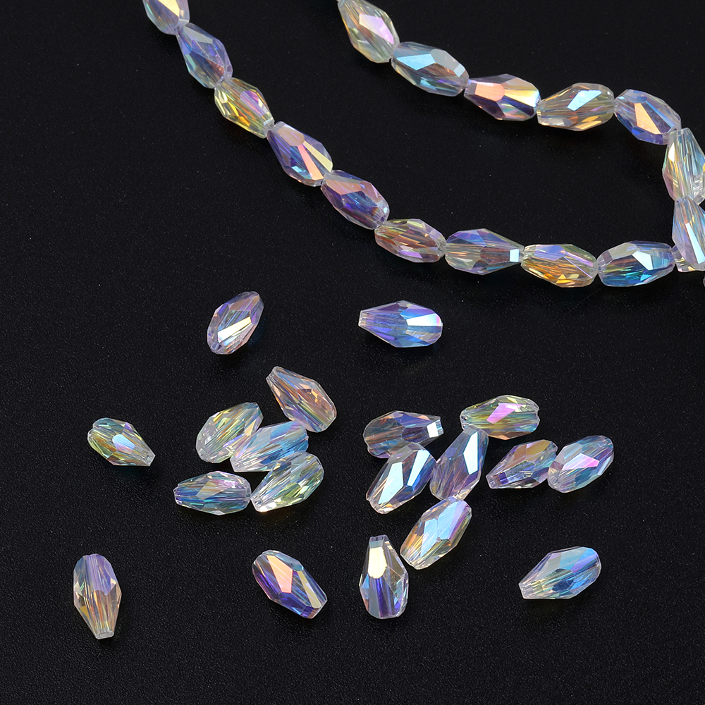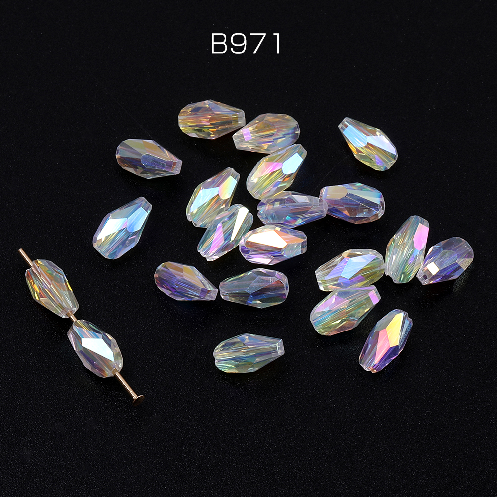 メッキガラスビーズ 不規則しずく型カット クリアABカラー 4×7mm(30ヶ)