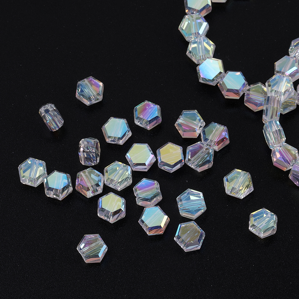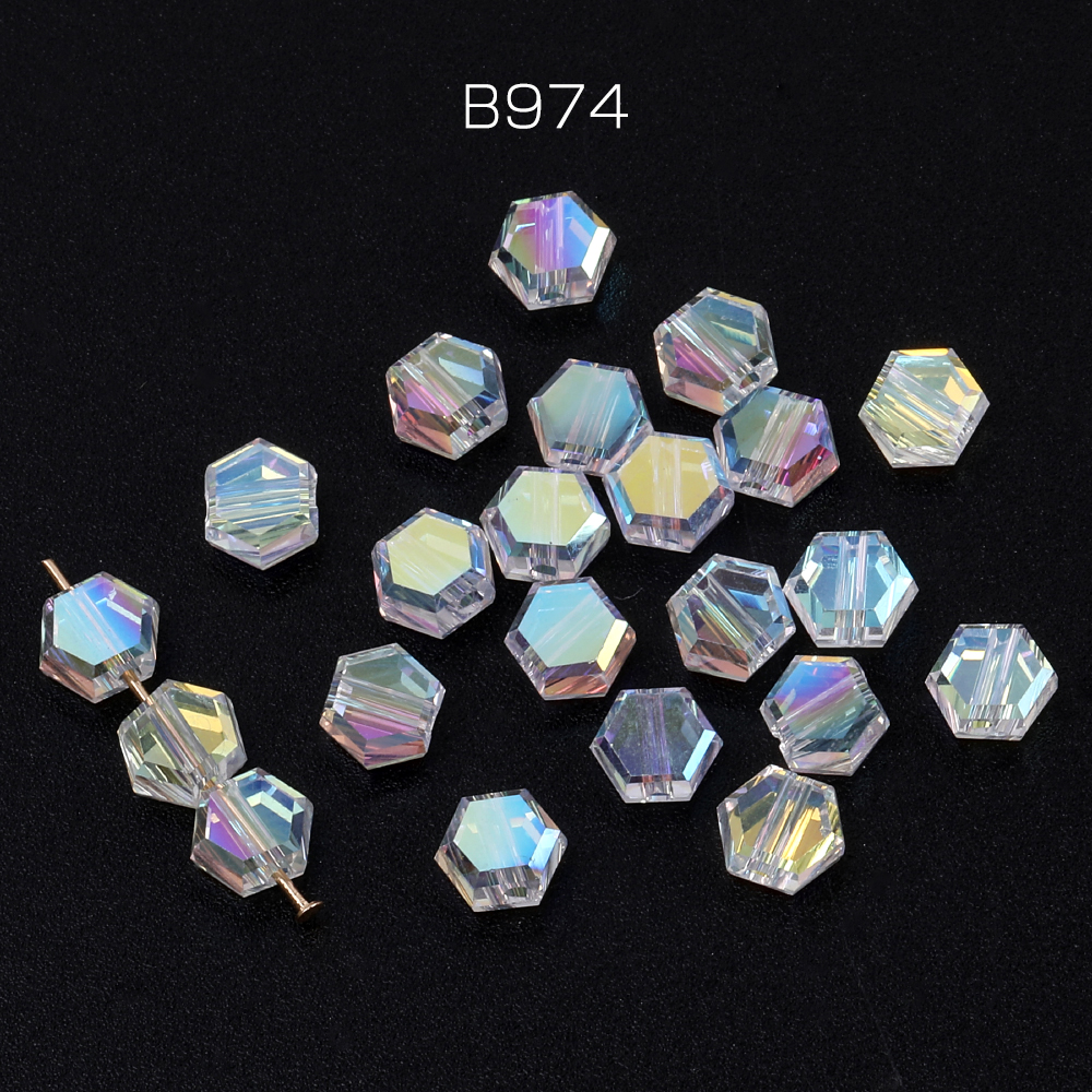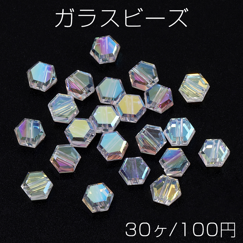 メッキガラスビーズ 六角形カット クリアABカラー 5×6mm(30ヶ)