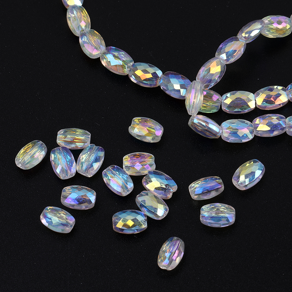 メッキガラスビーズ オーバルカット クリアABカラー 4×6mm(30ヶ)