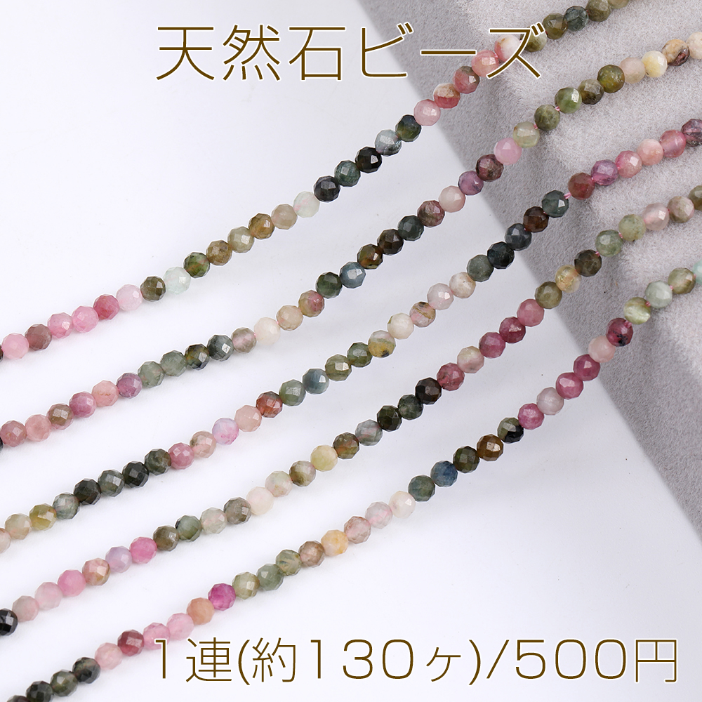 天然石ビーズ トルマリン ラウンドカット 3mm 1連(約130ヶ)