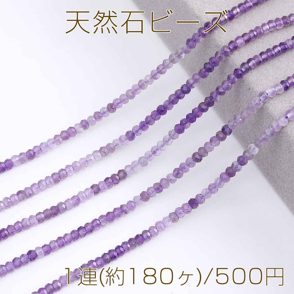天然石ビーズ アメジスト ボタンカット 2×3mm 1連(約180ヶ)