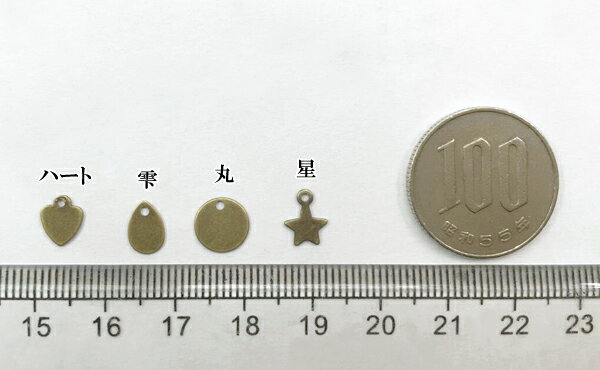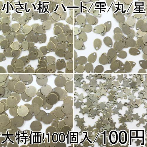 大特価 !メタルパーツ ミニチャーム 板 ハート/雫/丸/星 真鍮古美 100個入