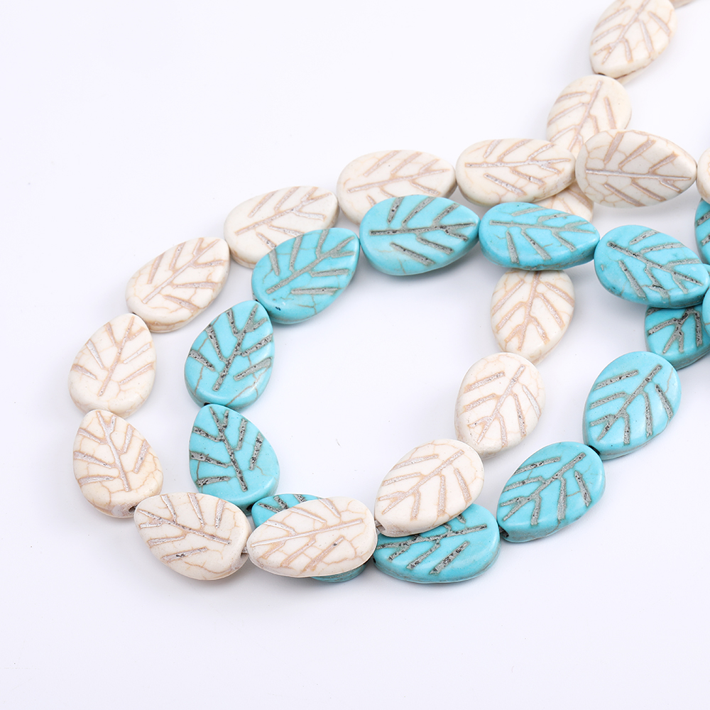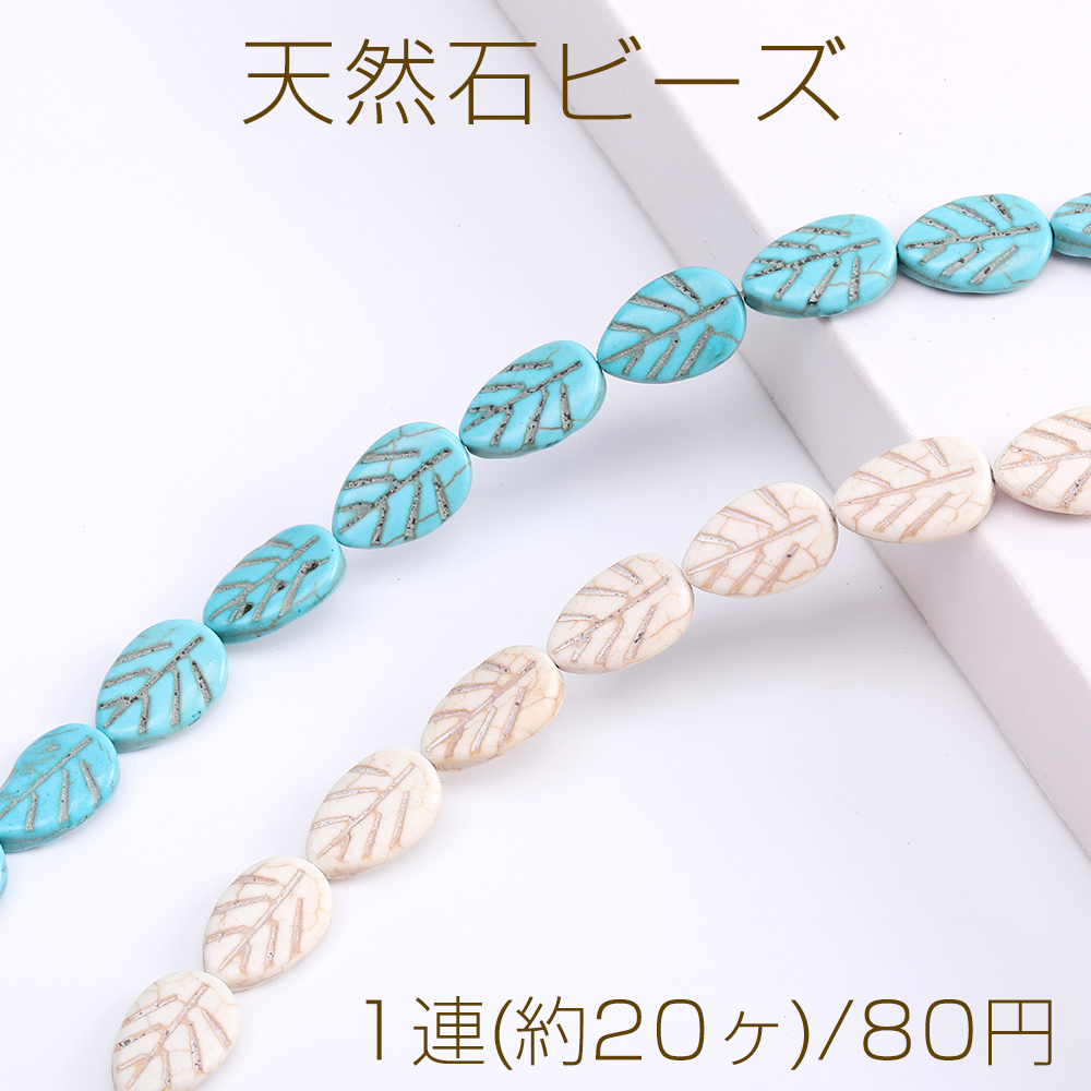 天然石ビーズ ハウライト ターコイズ リーフ 12×18mm(1連)