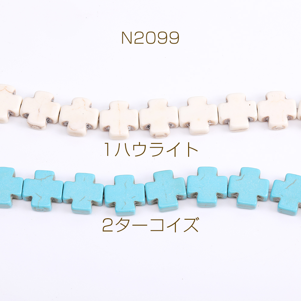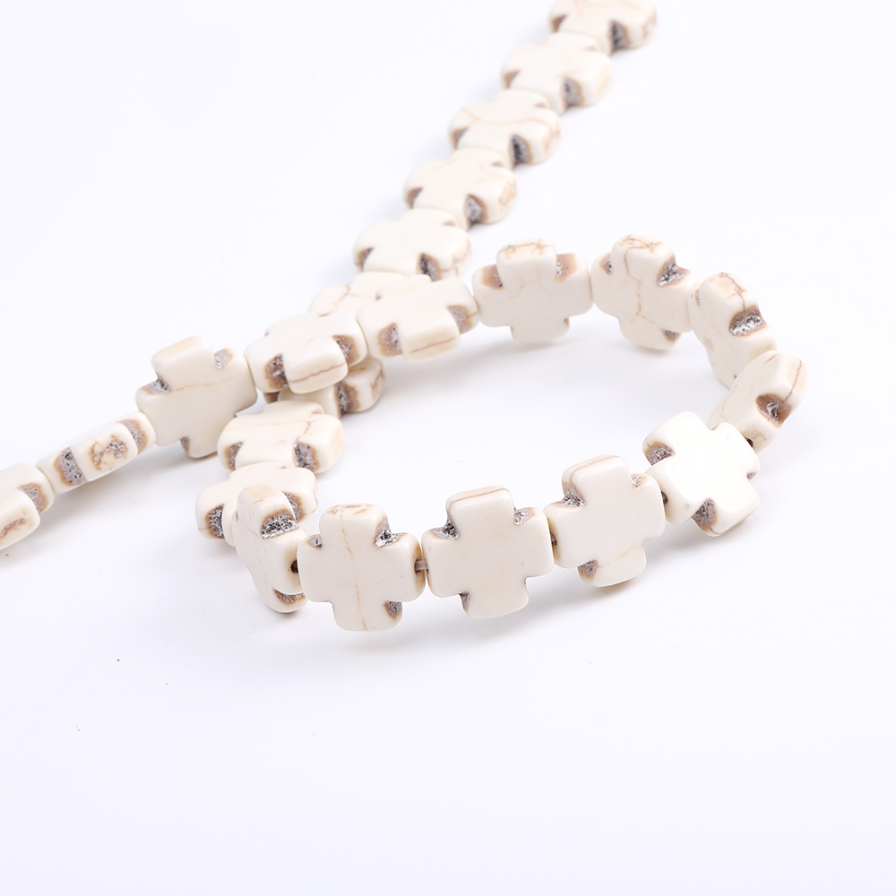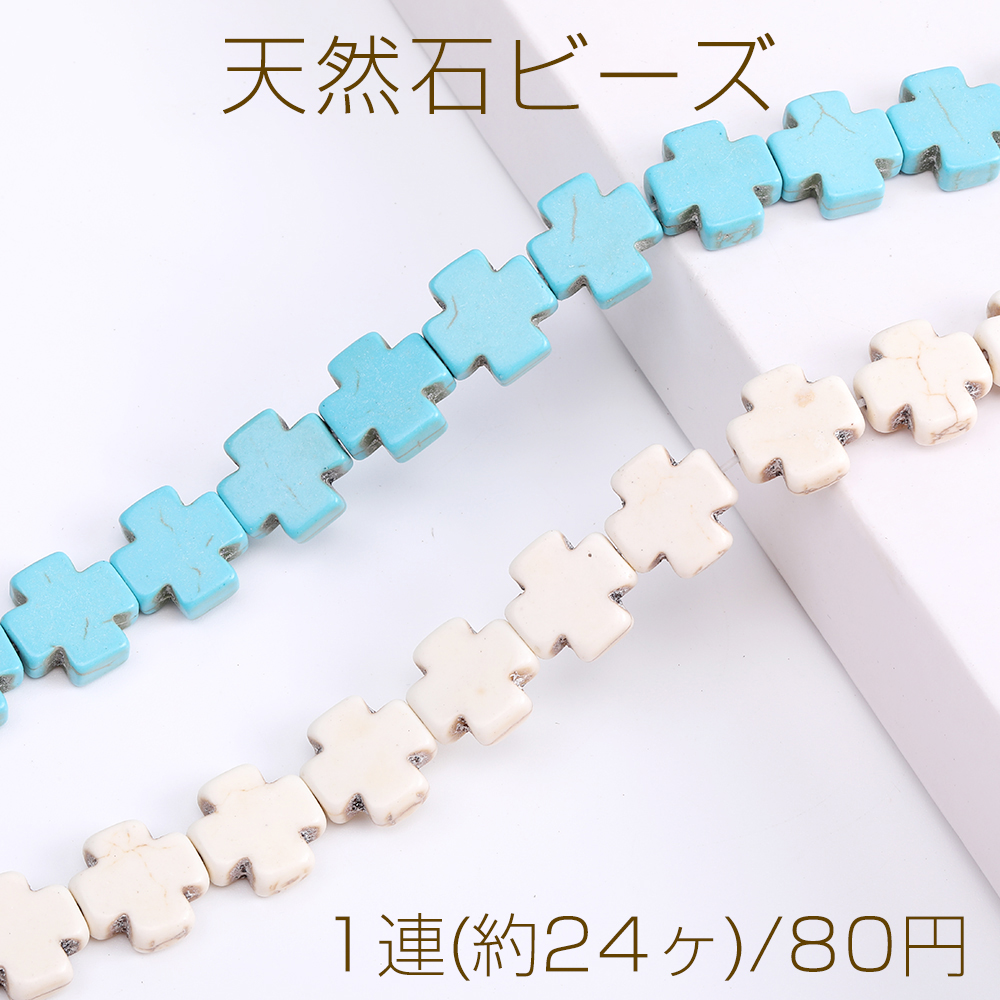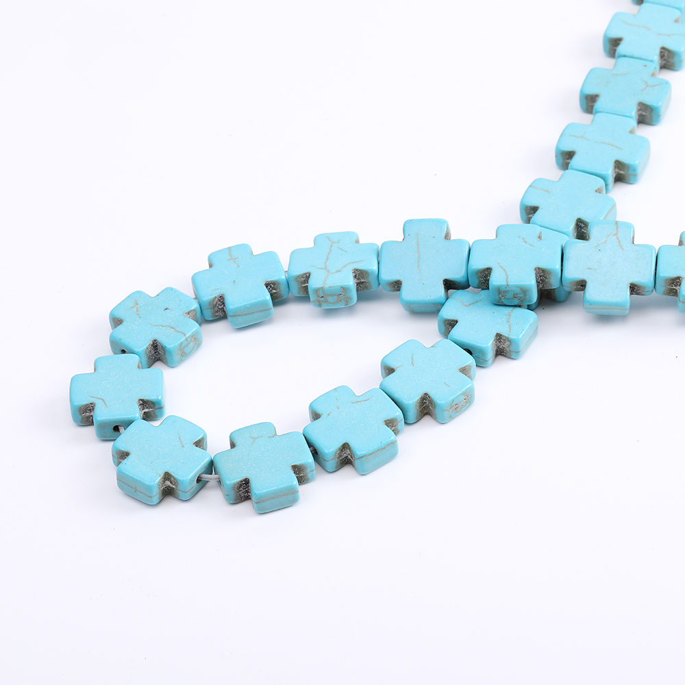 天然石ビーズ ハウライト ターコイズ 十字架 15×15mm(1連)