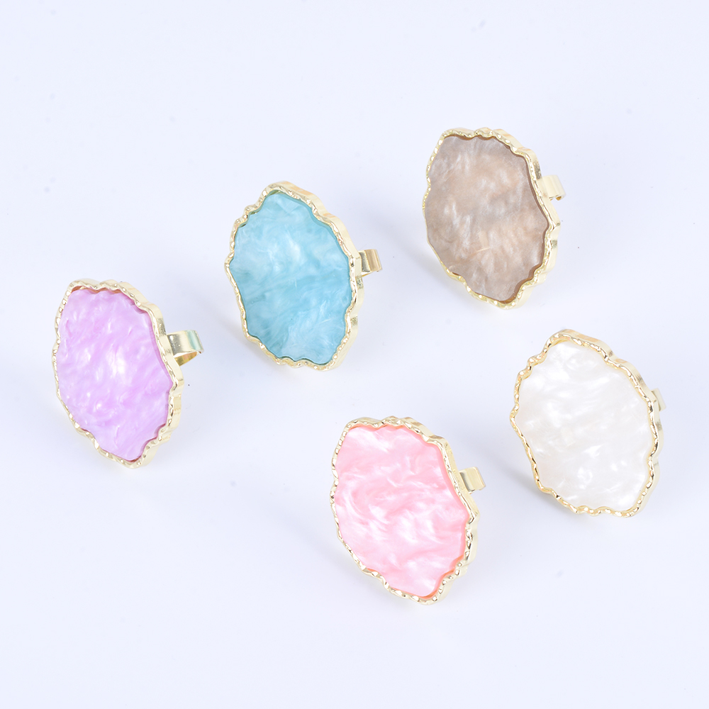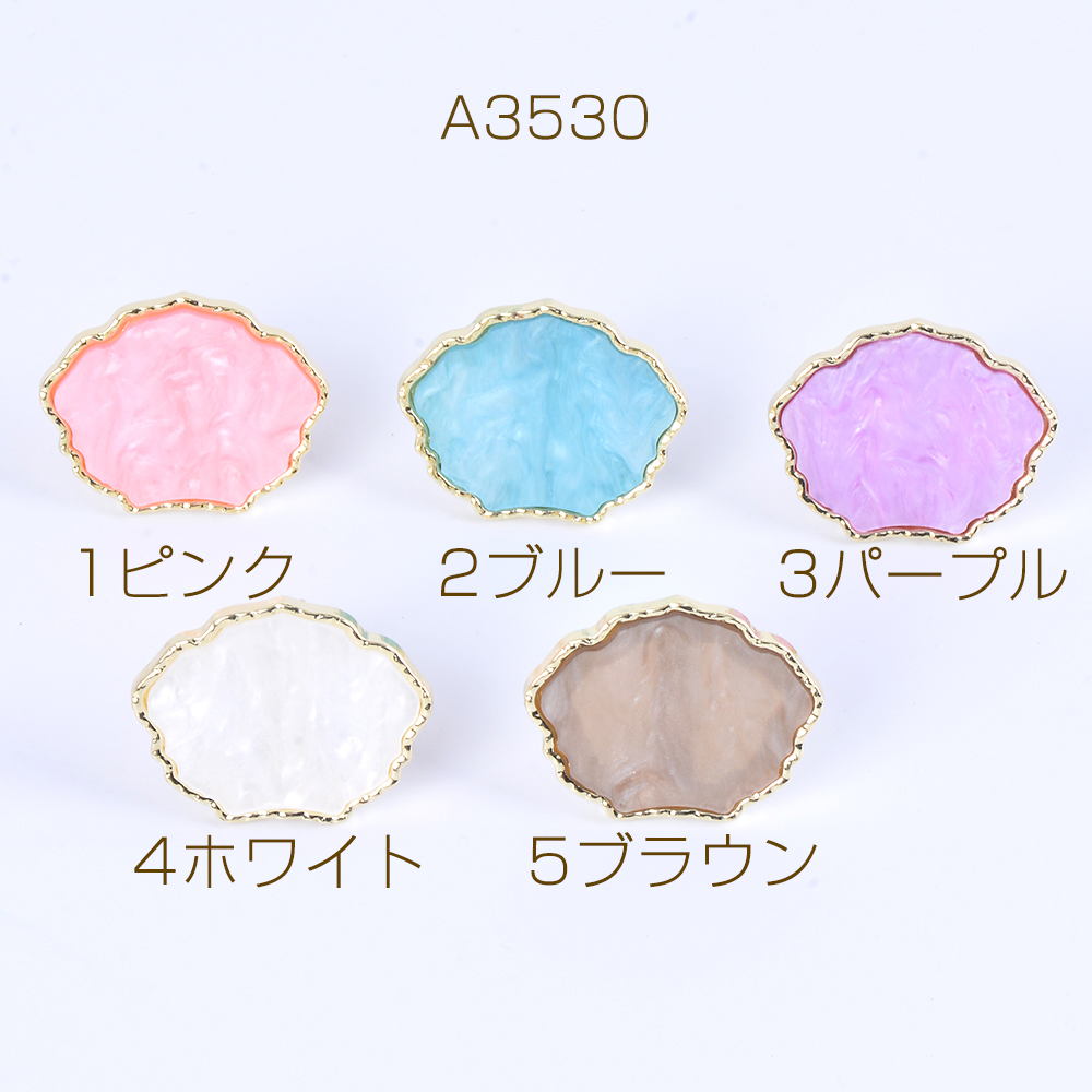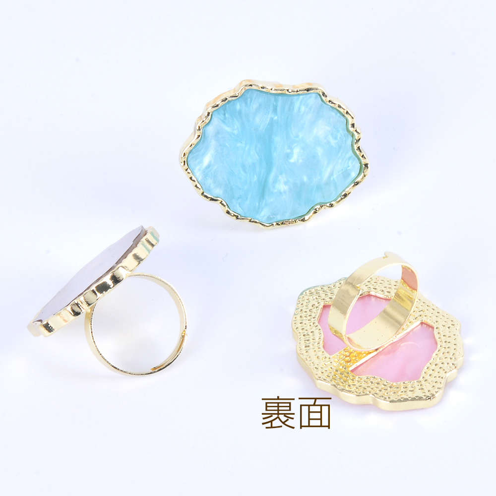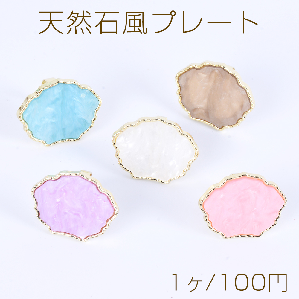 天然石風プレート 貝殻型 リング付き ネイルプレート ジェルネイルパレット アクセサリートレイ 30×37mm ゴールド(1ヶ)
