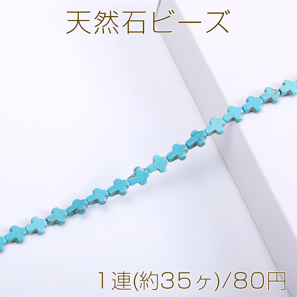 天然石ビーズ ターコイズ 十字架 8×10mm(1連)