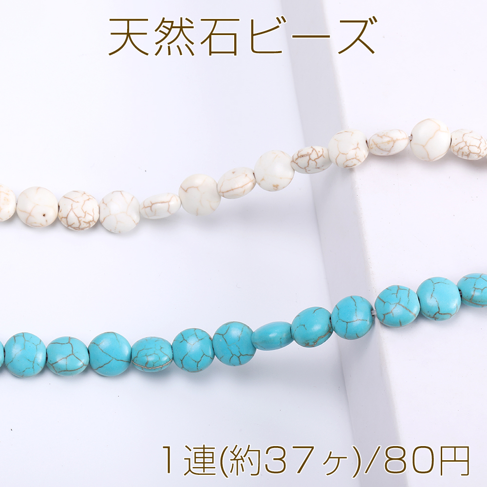 天然石ビーズ ハウライト ターコイズ コイン型 10×10mm(1連)
