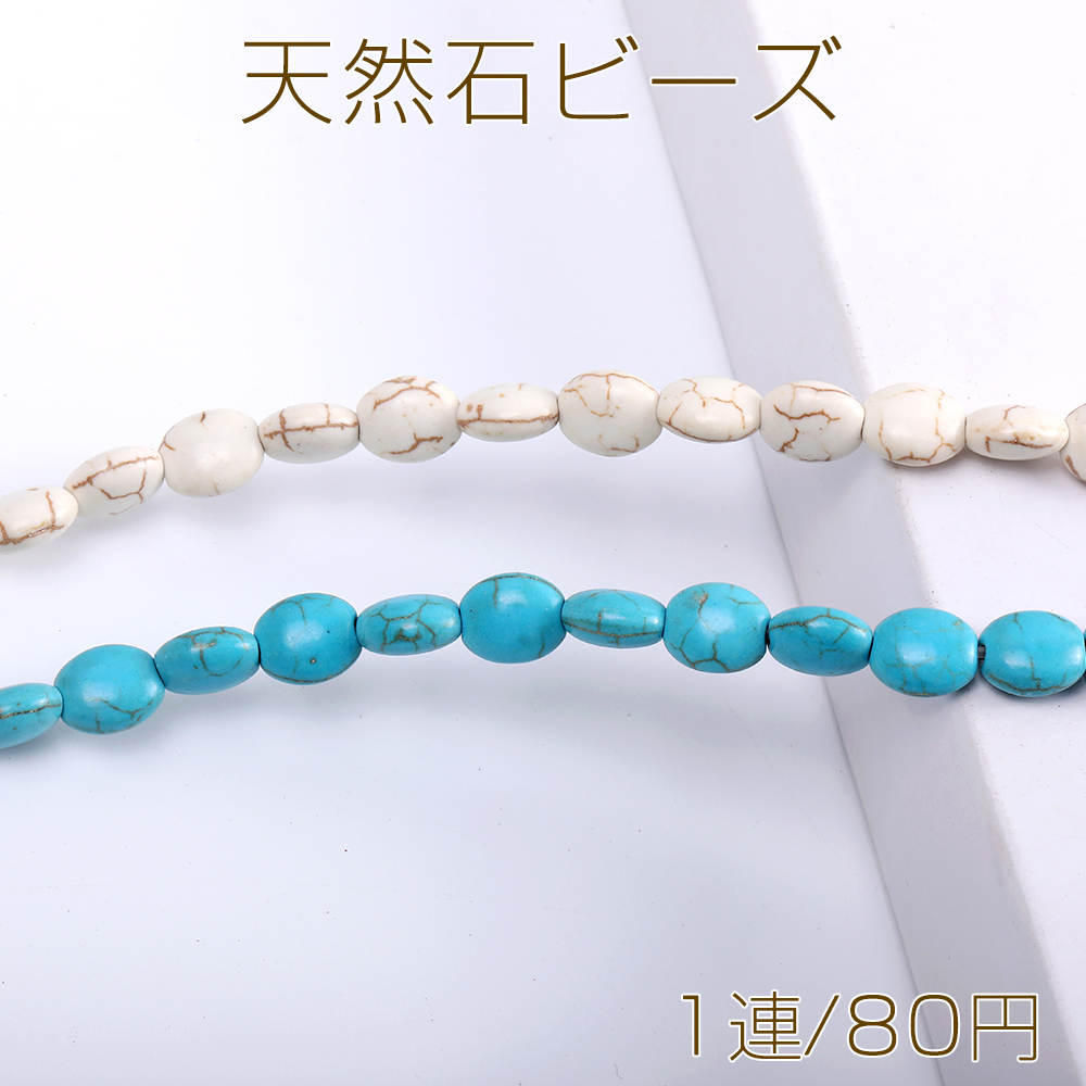 天然石ビーズ ハウライト ターコイズ オーバル 8×10mm(1連)