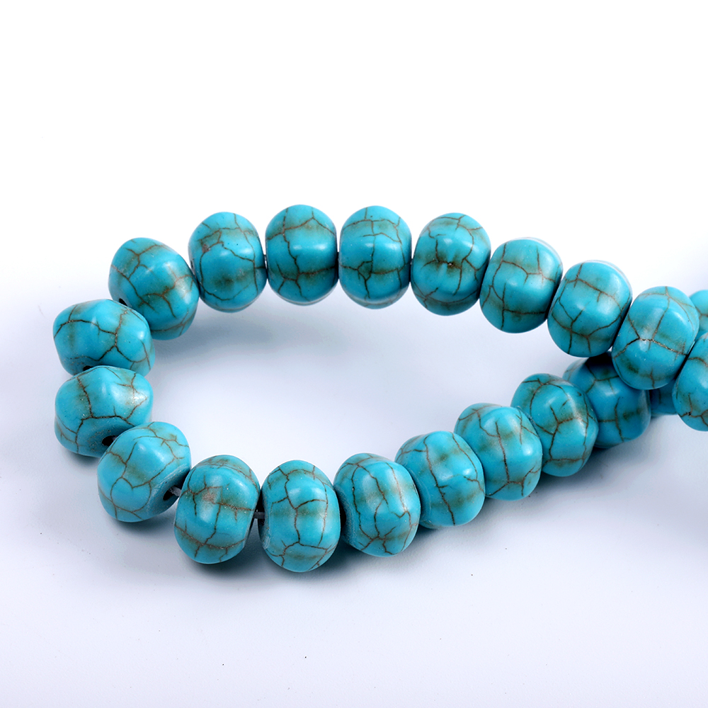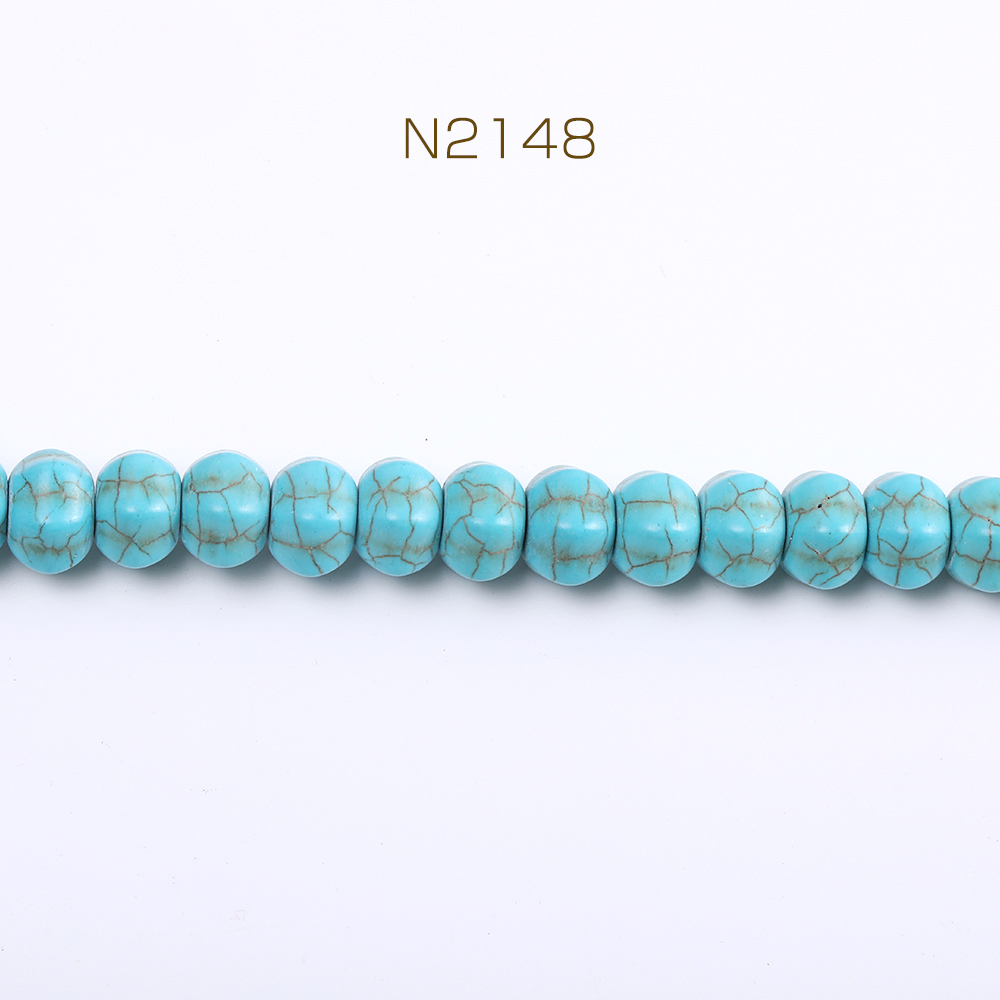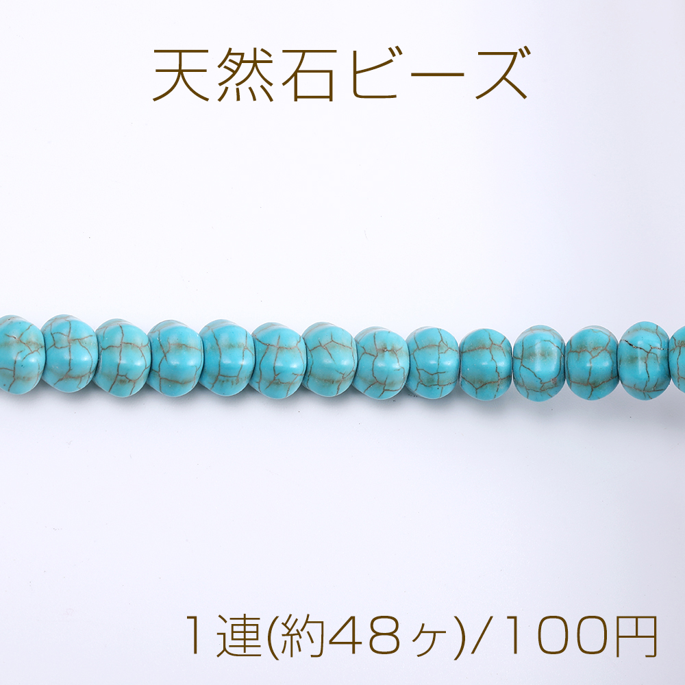 天然石ビーズ ターコイズ 筋入りボタン 8×11mm(1連)