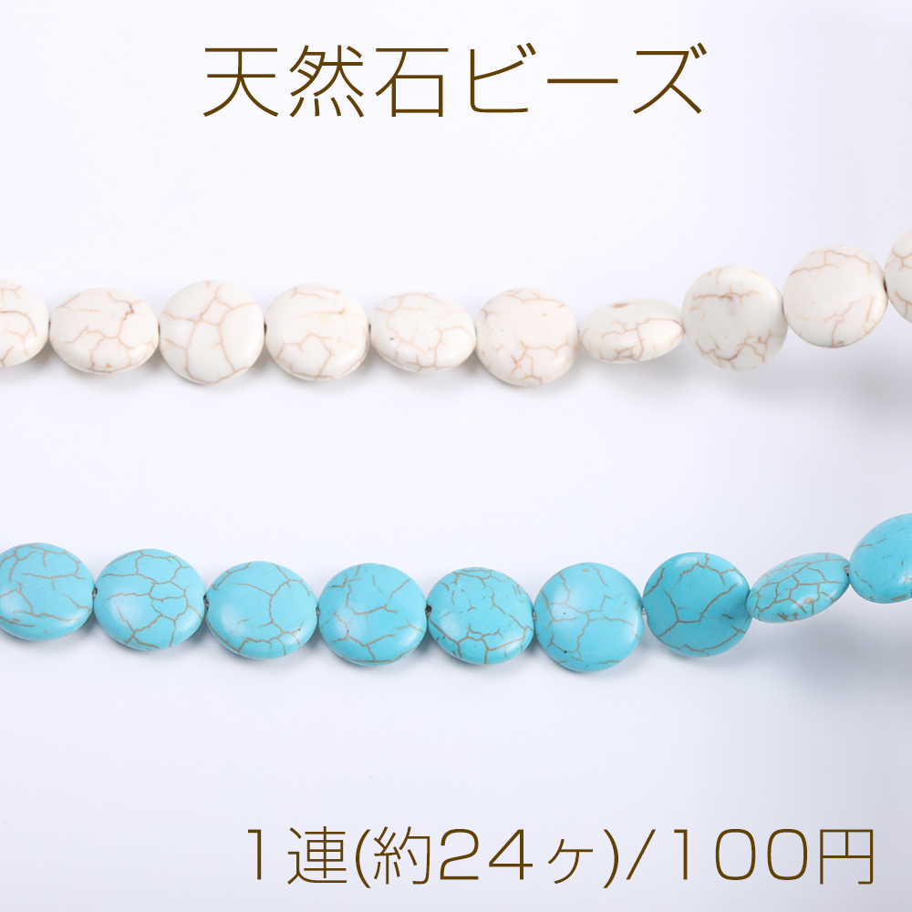 天然石ビーズ ハウライト ターコイズ コイン型 16mm(1連)