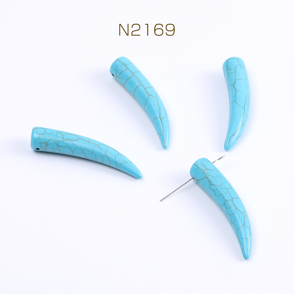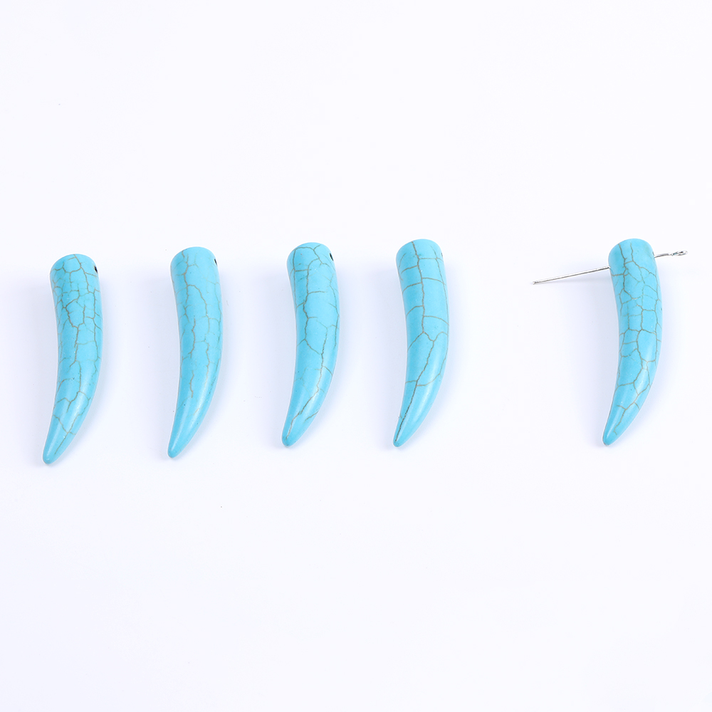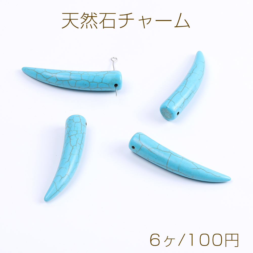 天然石チャーム ターコイズ 象牙型 横穴 10×50mm(6ヶ)