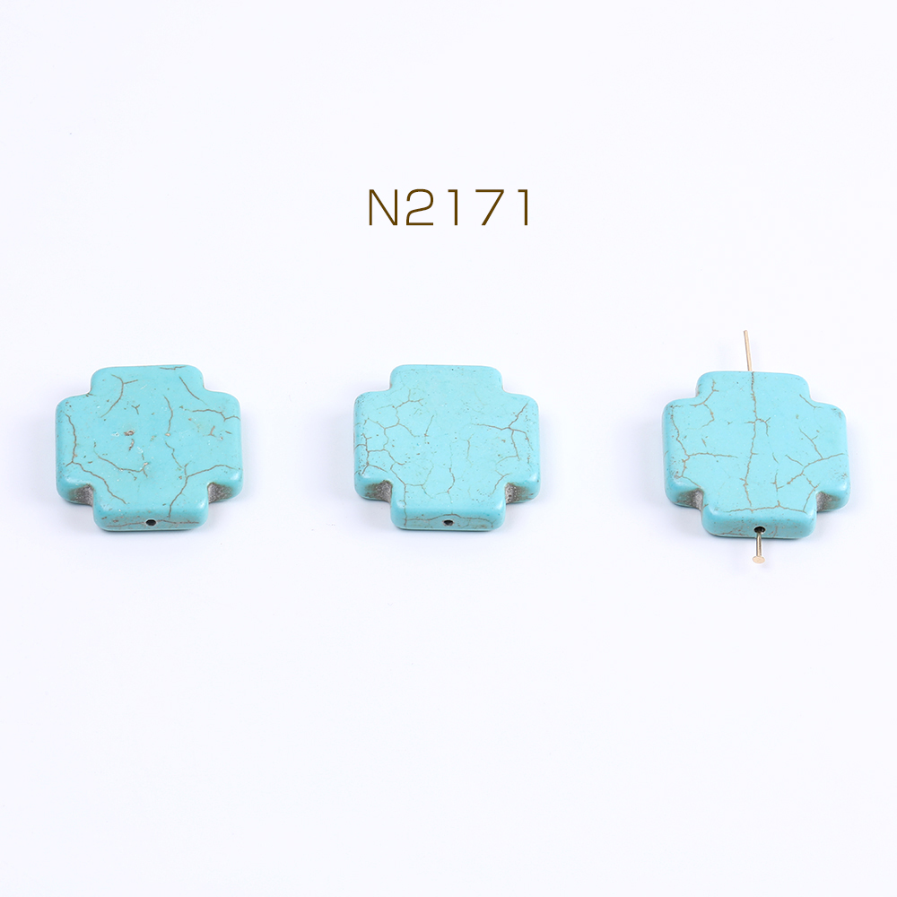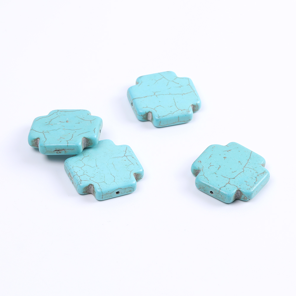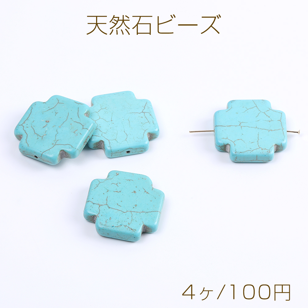 天然石ビーズ ターコイズ 十字架 30×30mm(4ヶ)