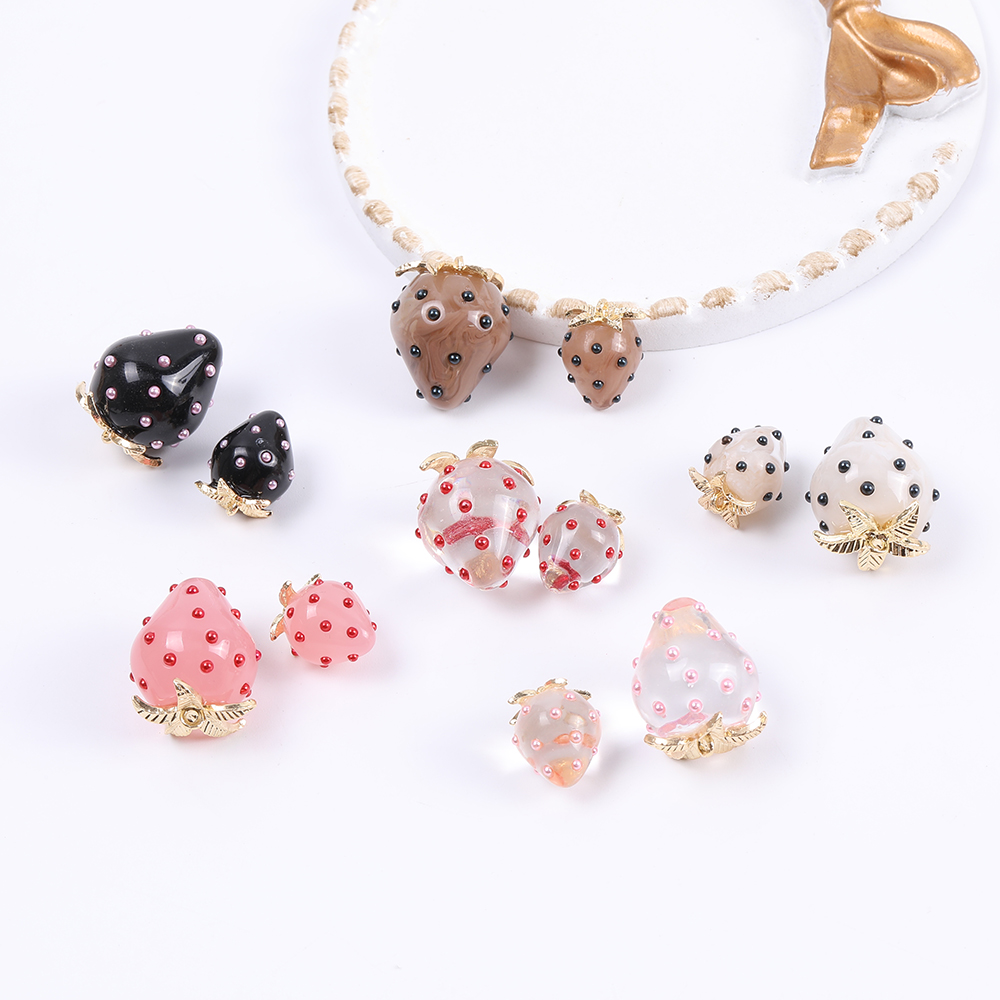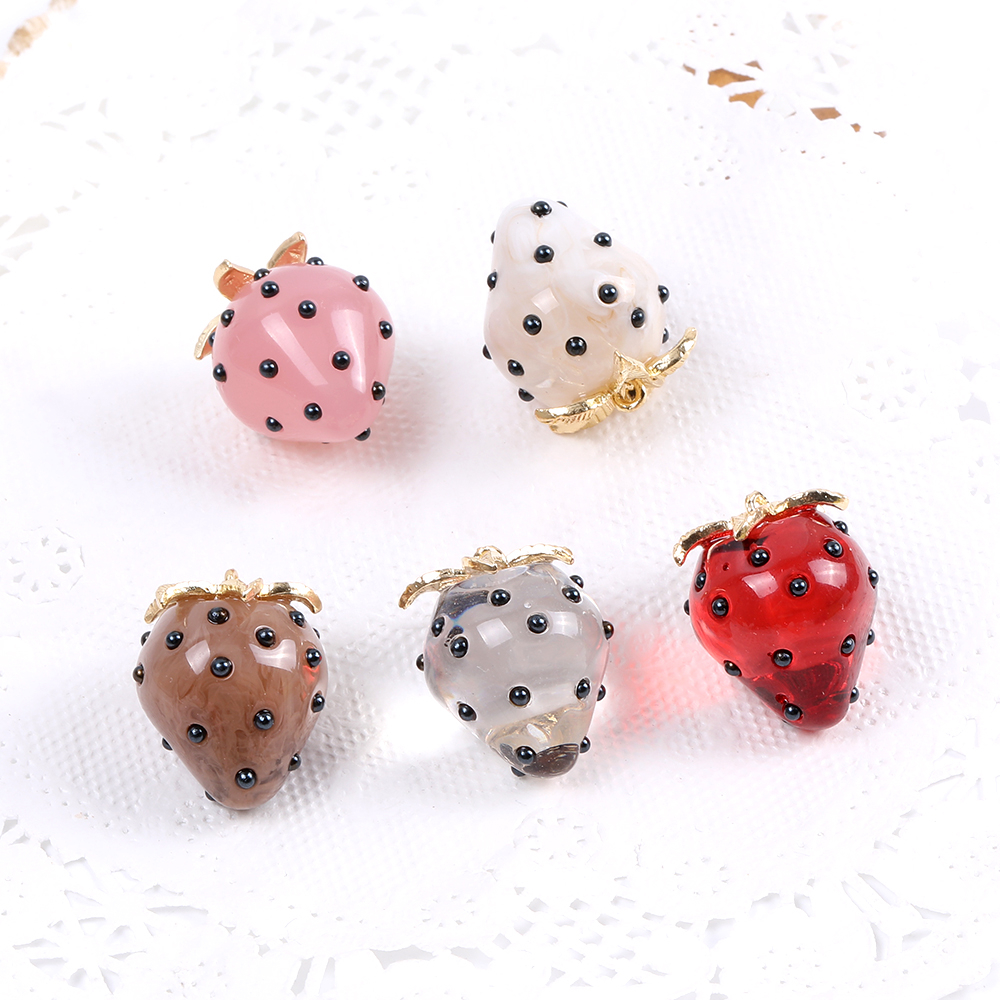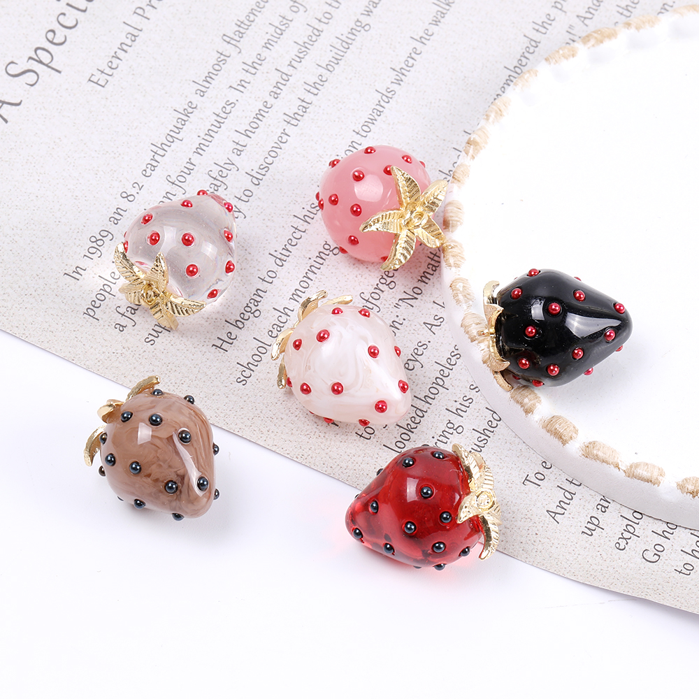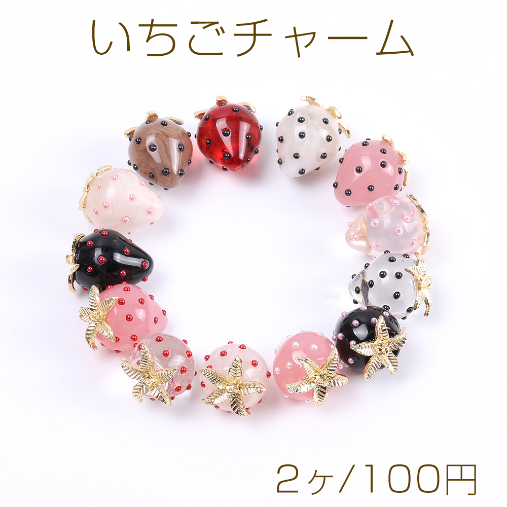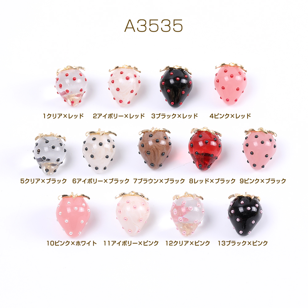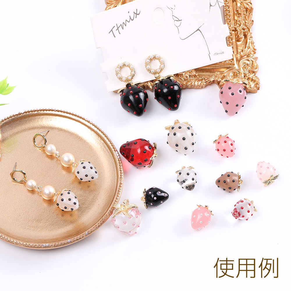 立体いちごチャーム 樹脂製 イチゴチャーム 苺 極小パールビーズ付き ヘタあり カン付き 18×22mm(2ヶ)