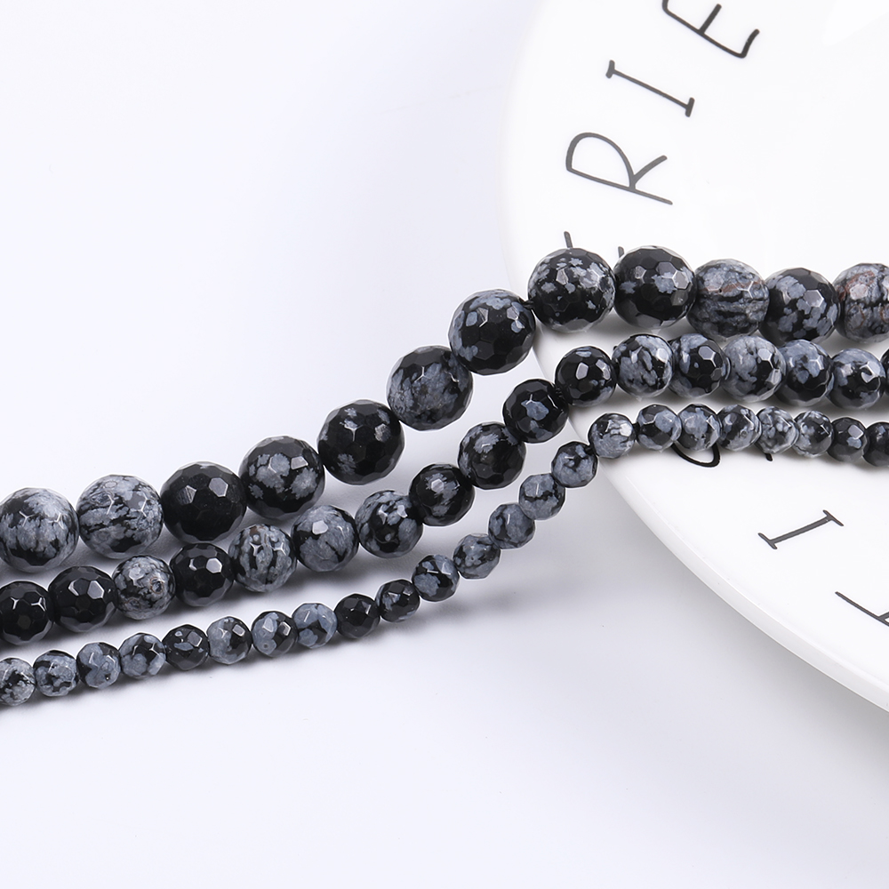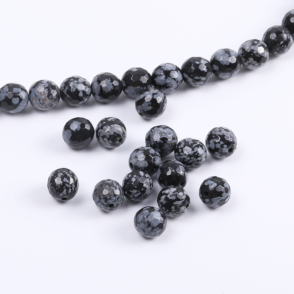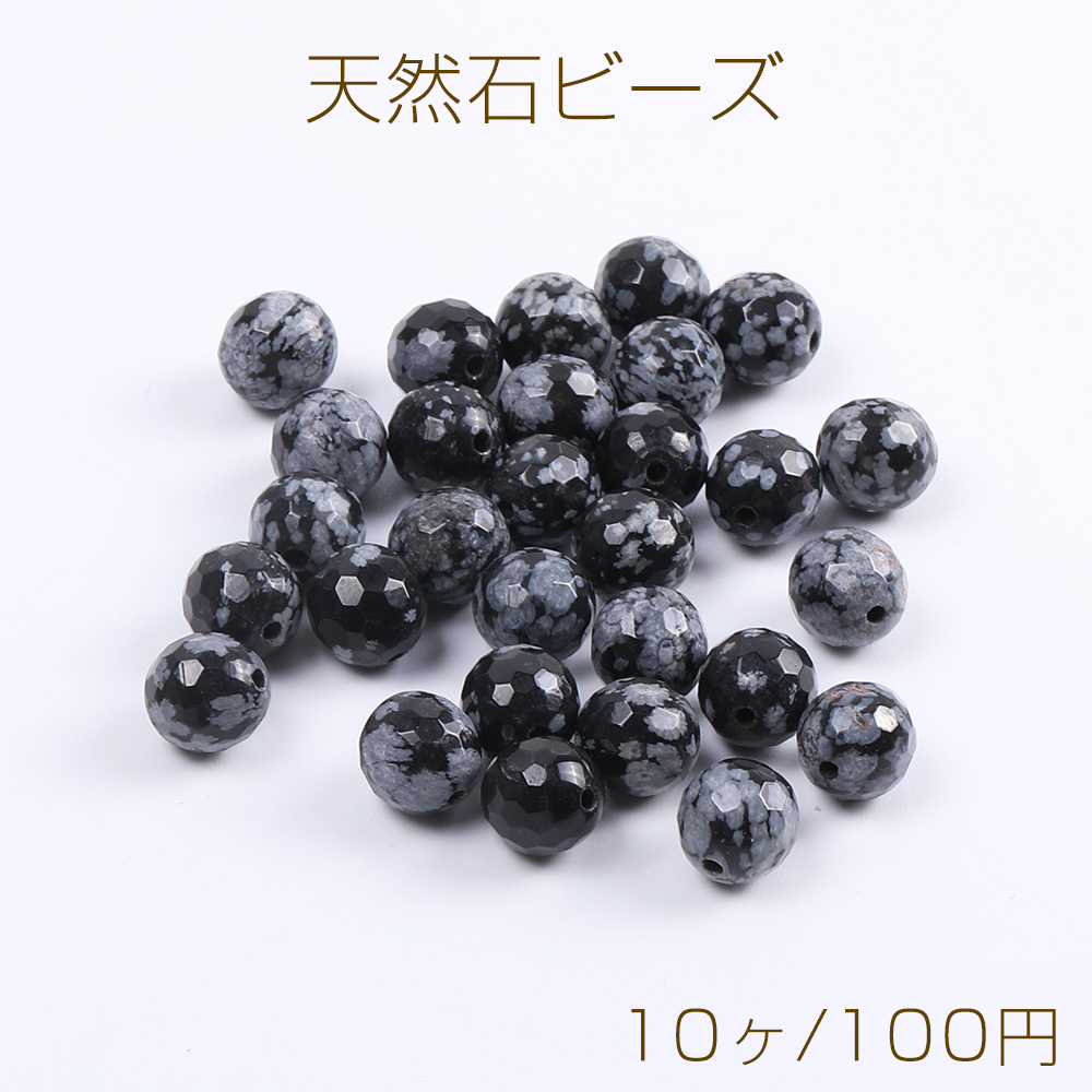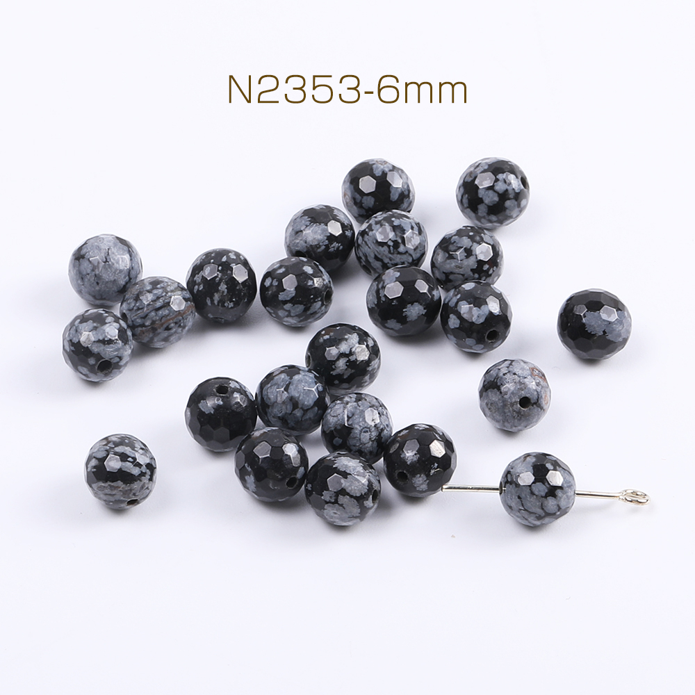 天然石ビーズ スノーフレークオブシディアン ラウンドカット 6mm(10ヶ)