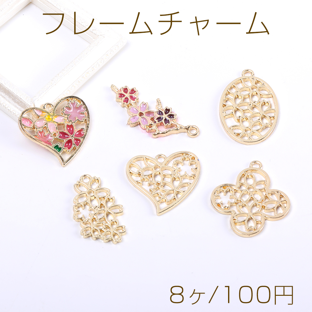 レジンフレームチャーム 桜 カン付き ゴールド(8ヶ)