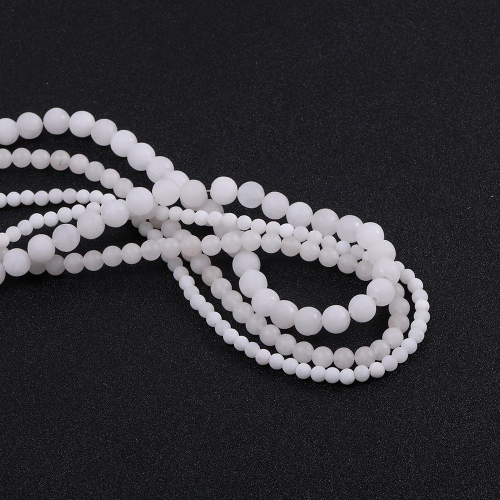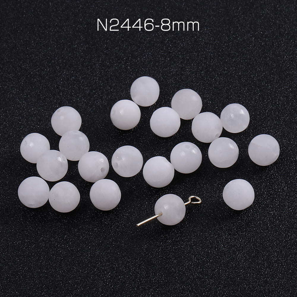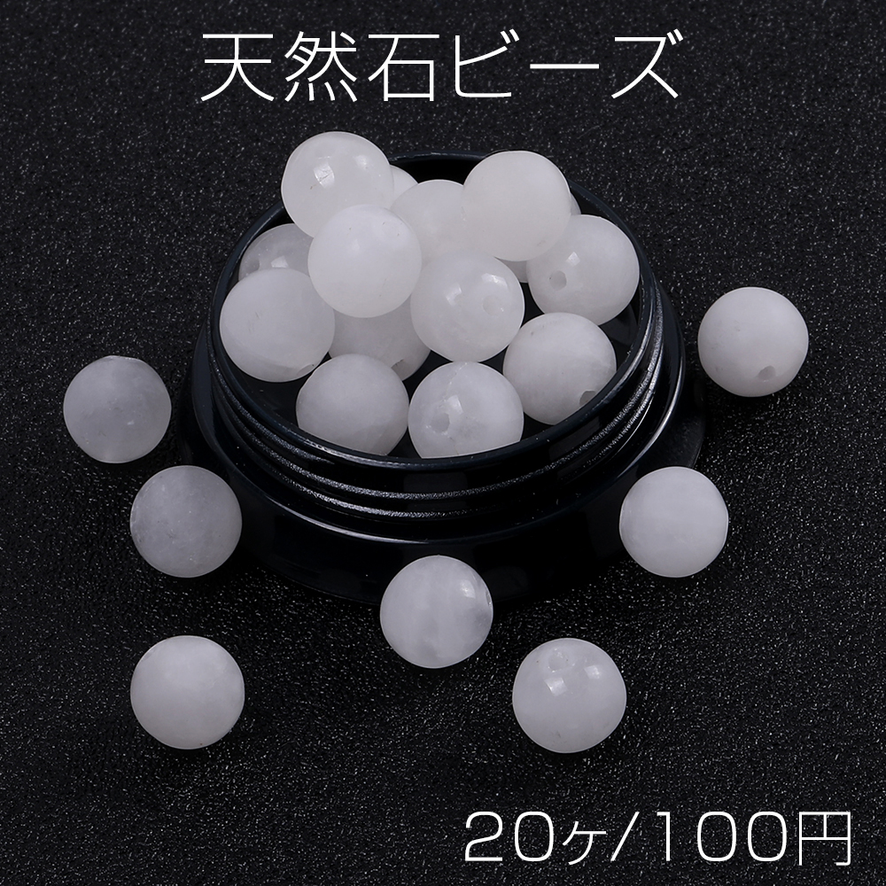 天然石ビーズ フロスト加工 ホワイトジェイド 丸玉 8mm(20ヶ)