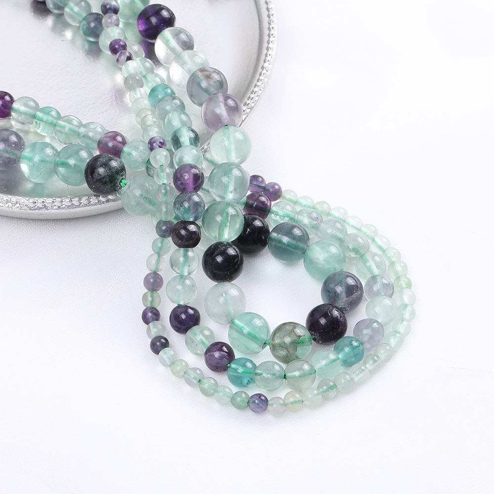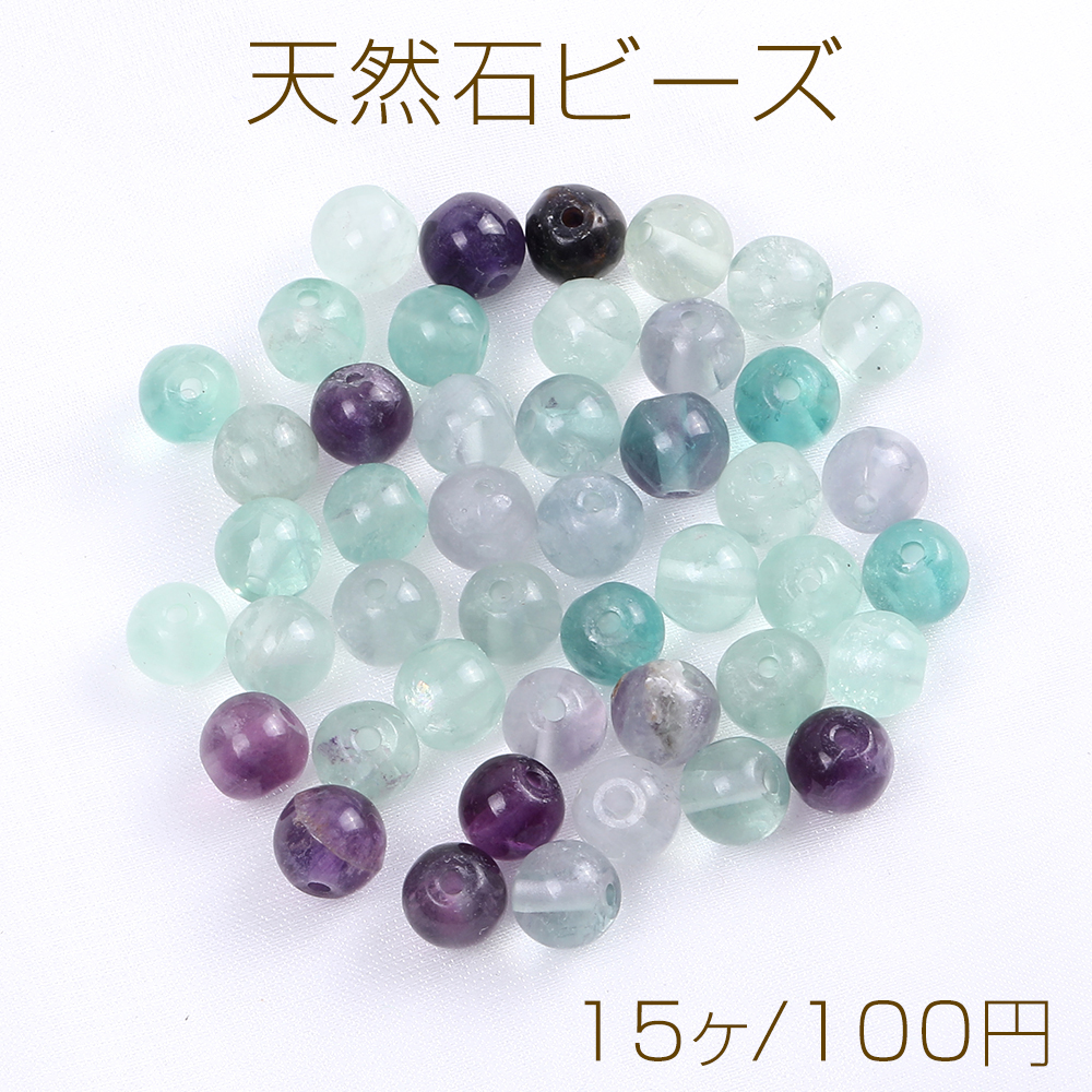 天然石ビーズ カラーフローライト 丸玉 6mm(15ヶ)