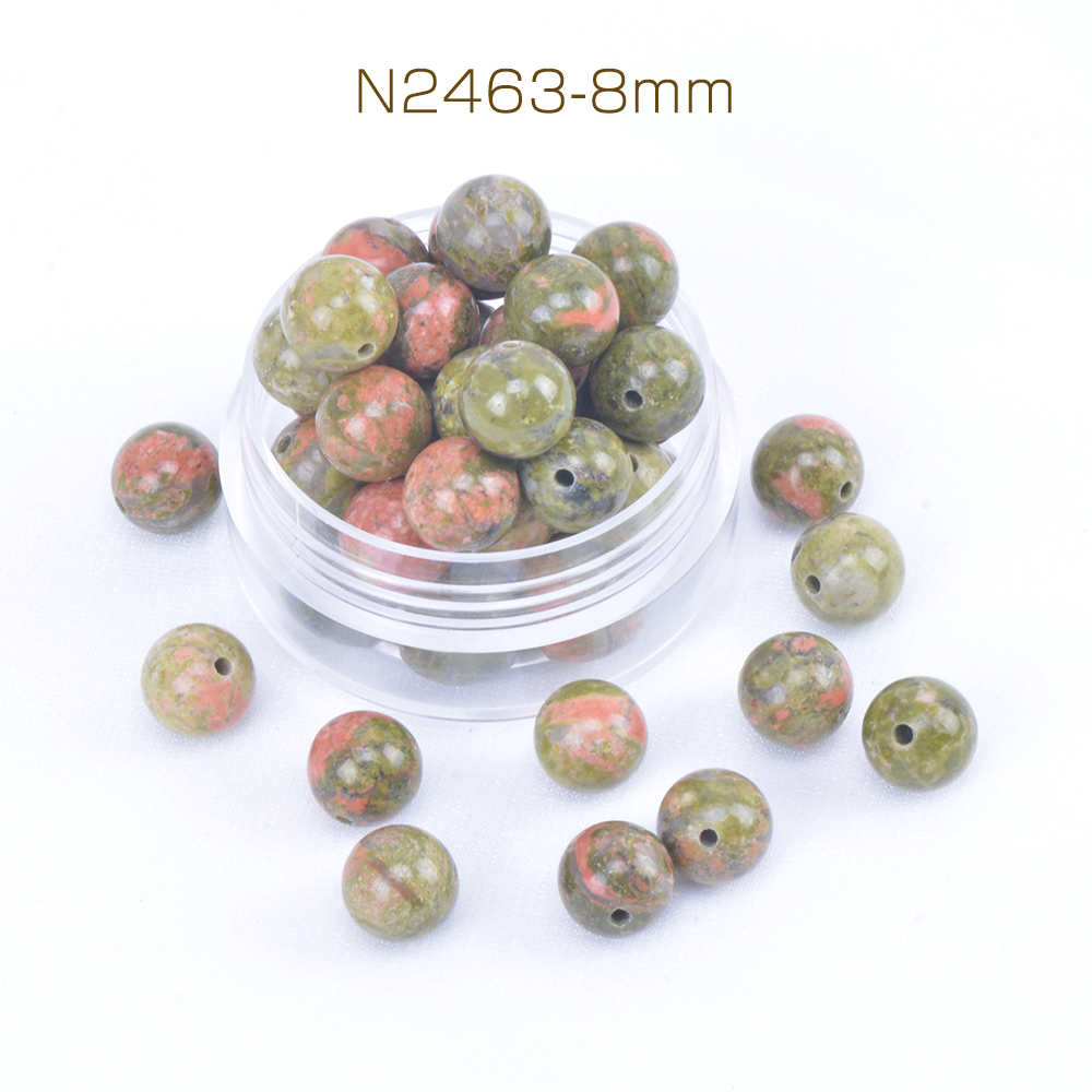 天然石ビーズ ユナカイト 丸玉 8mm(15ヶ)