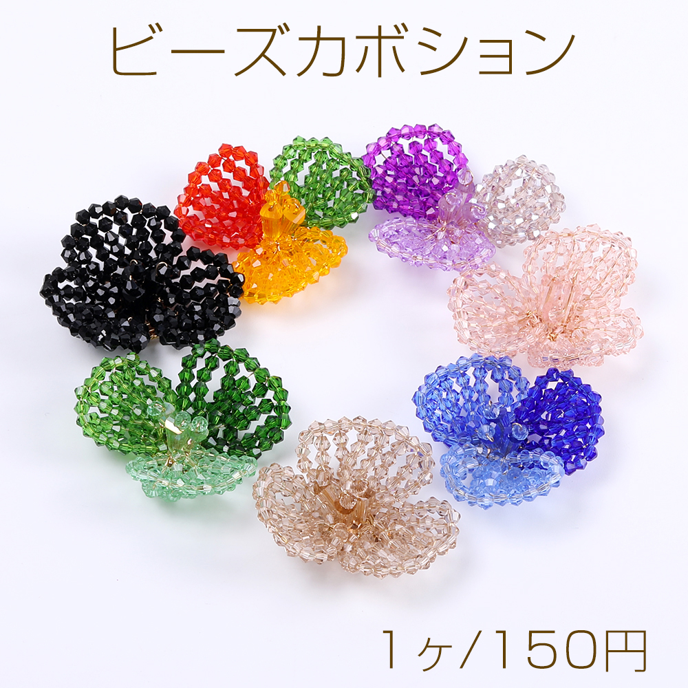 ガラスビーズカボション フラワーパーツ 花型ハンドメイドアクセサリーパーツ 36×38mm(1ヶ)