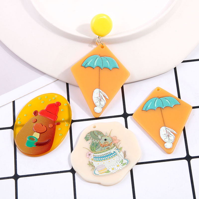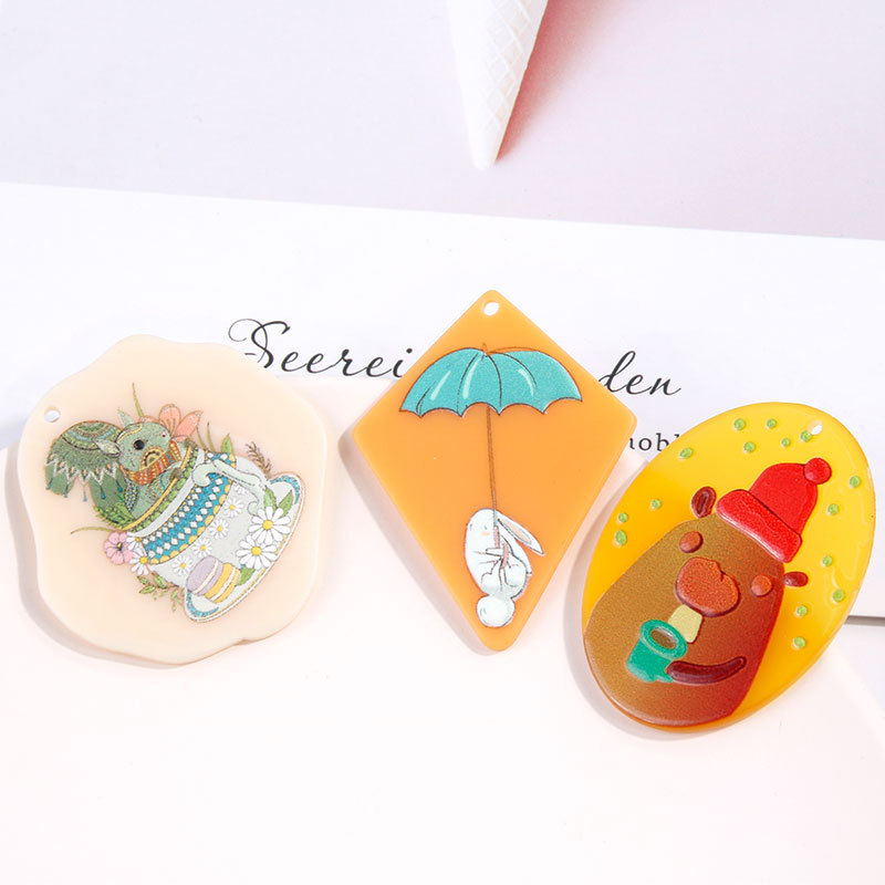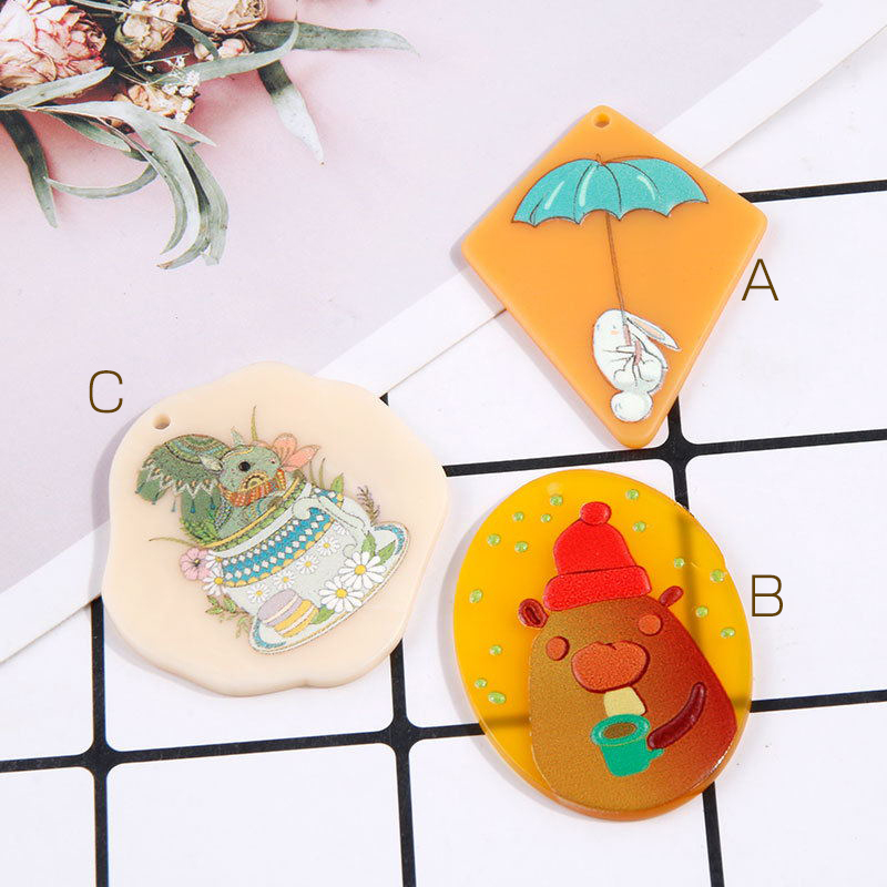 アクリルチャーム 兎 全3種 1穴 模様入り