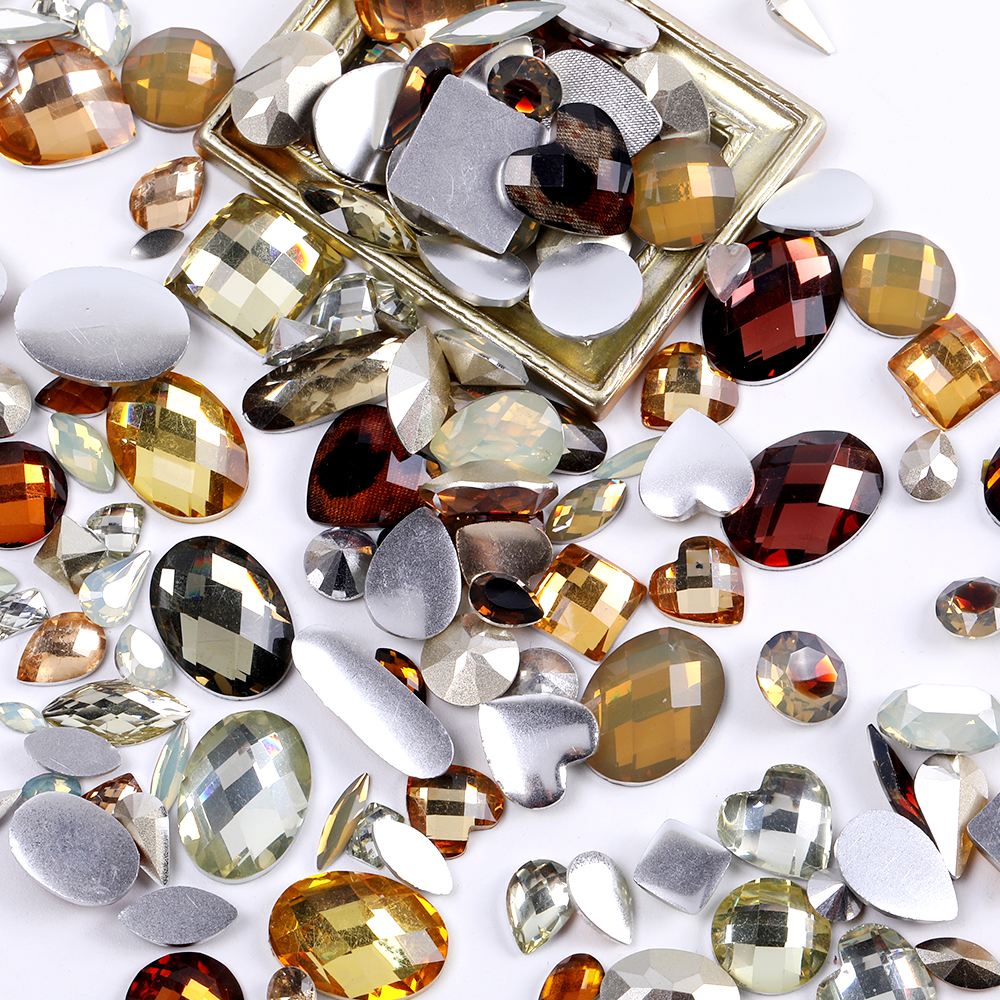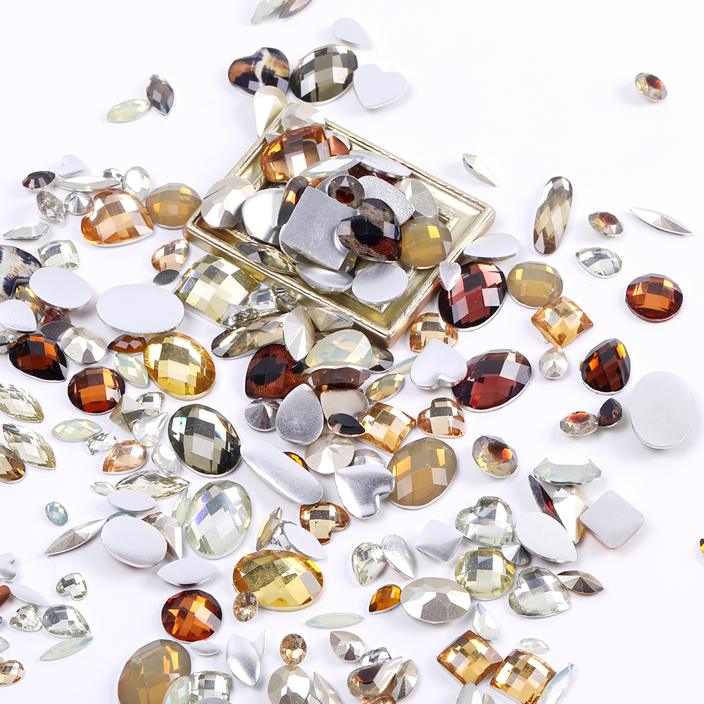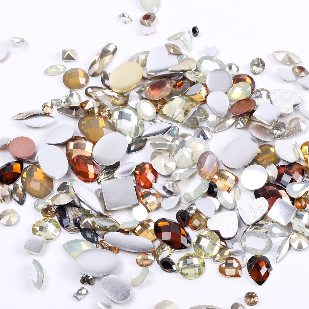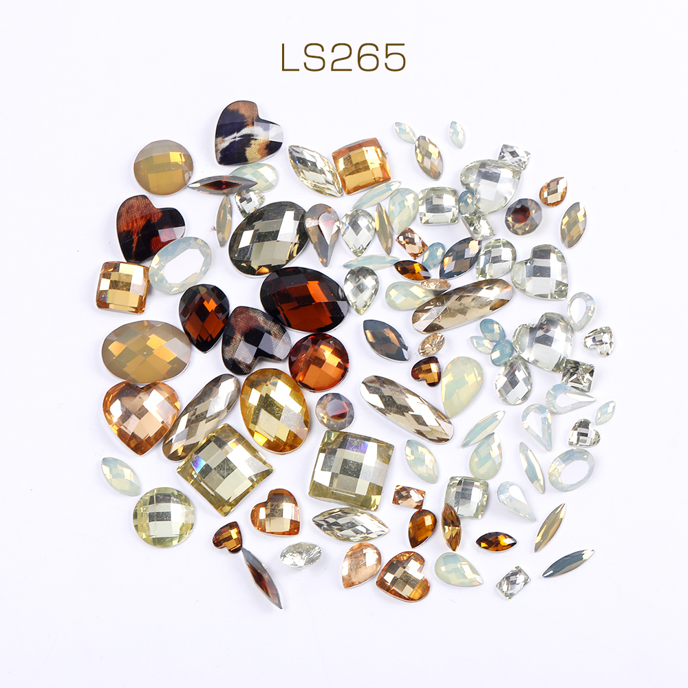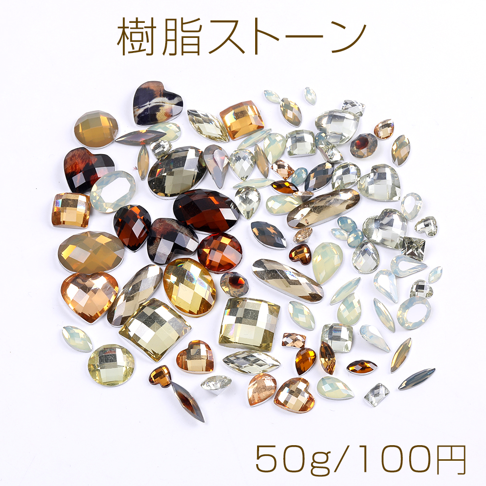 樹脂ストーン 樹脂貼付けパーツ 樹脂カボション ミックスカラー ベージュ×ブラウン(50g)