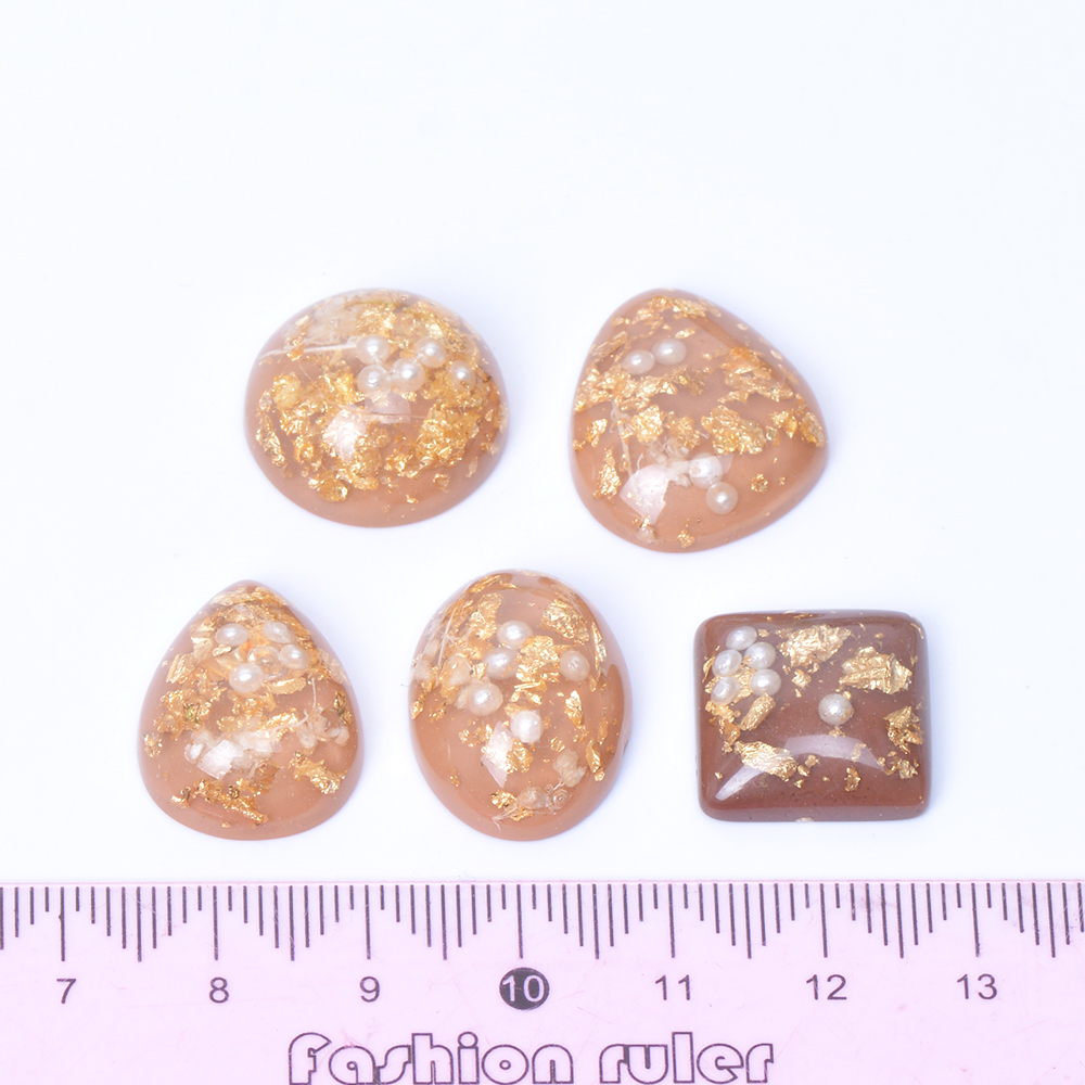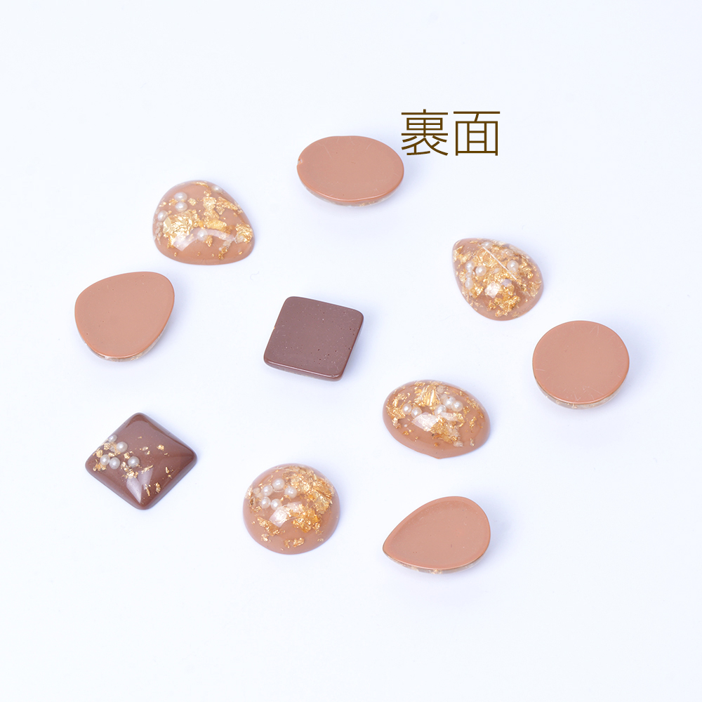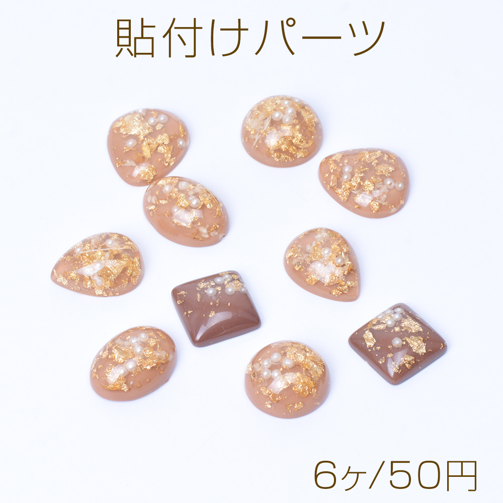 貼付けパーツ 樹脂貼付けパーツ 樹脂カボション 金箔入り ブラウン(6ヶ)