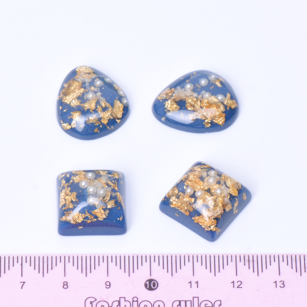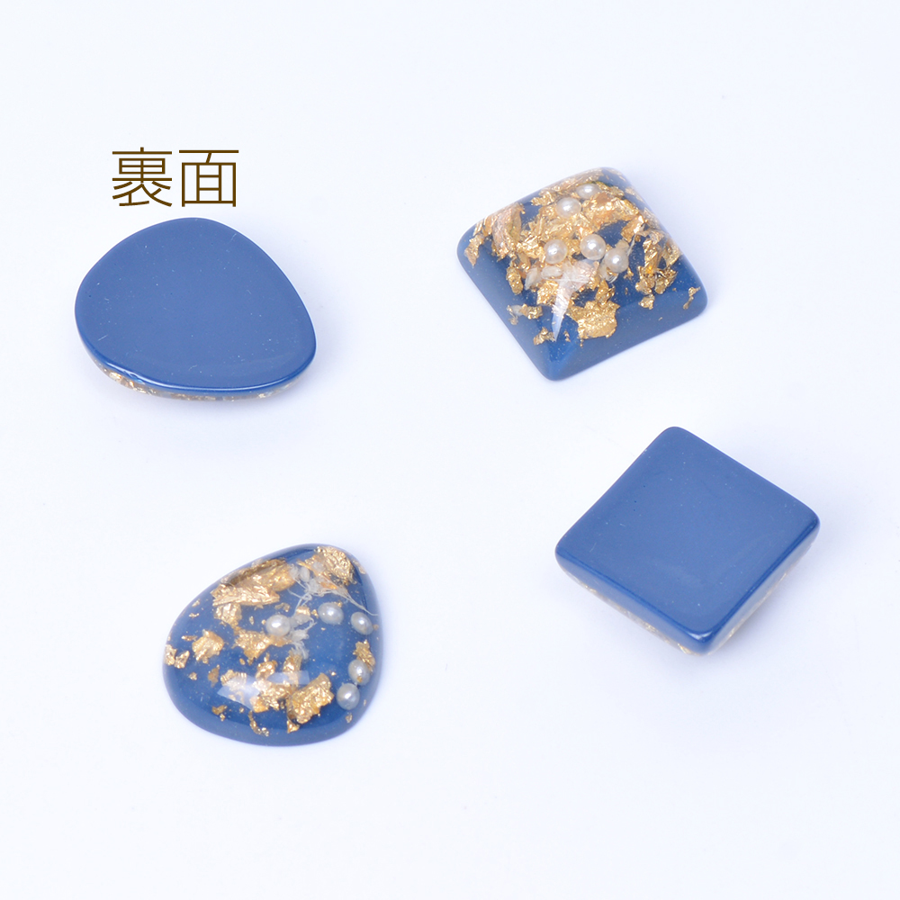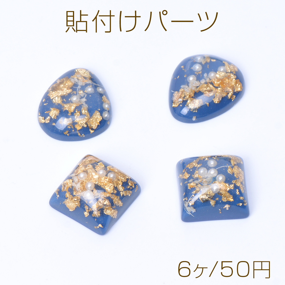貼付けパーツ 樹脂貼付けパーツ 樹脂カボション 金箔入り ブルー(6ヶ)