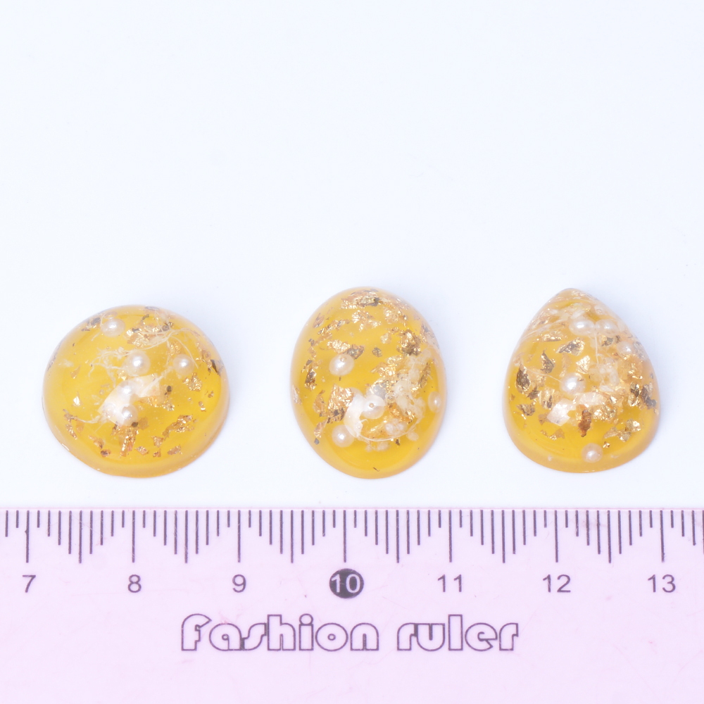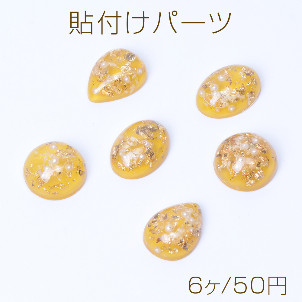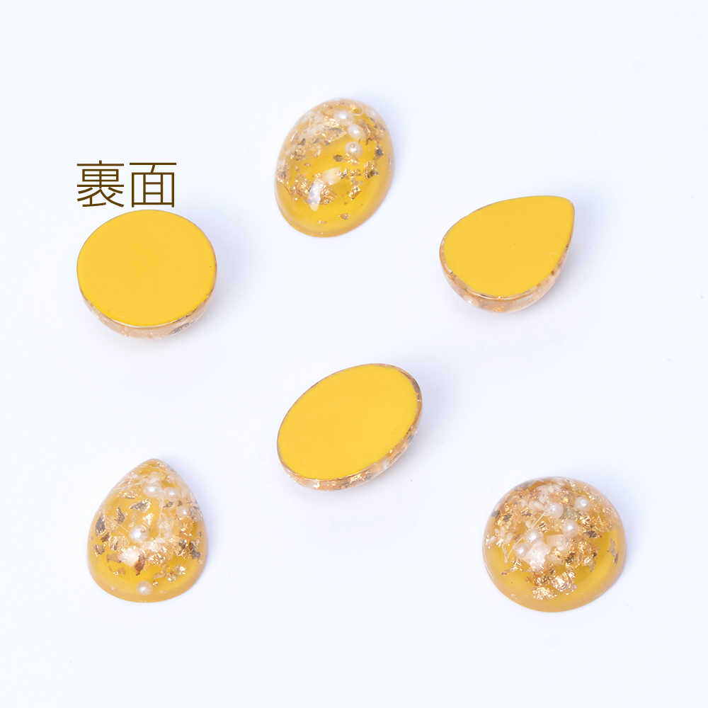 貼付けパーツ 樹脂貼付けパーツ 樹脂カボション 金箔入り イエロー(6ヶ)