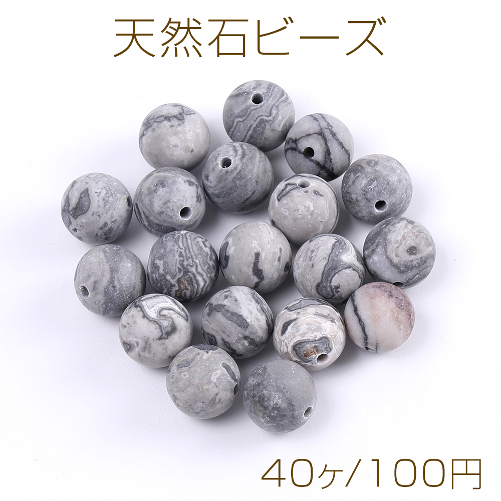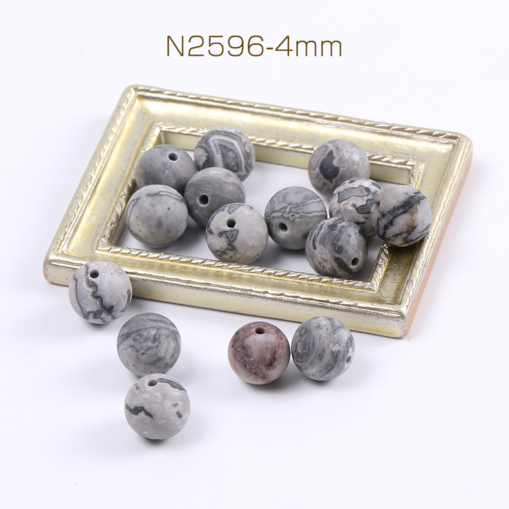 天然石ビーズ ピカソジャスパーグレー 丸玉 4mm(40ヶ)