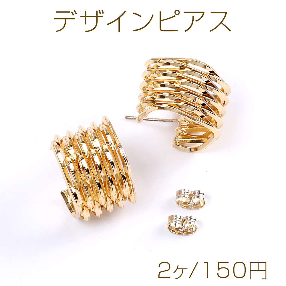 高品質デザインピアス 13×19mm ゴールド(2ヶ)