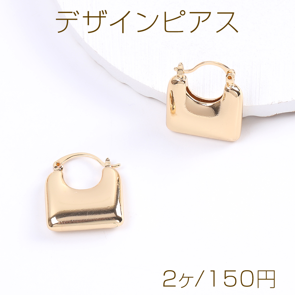 高品質デザインピアス フープピアス バッグ 18×21mm ゴールド(2ヶ)