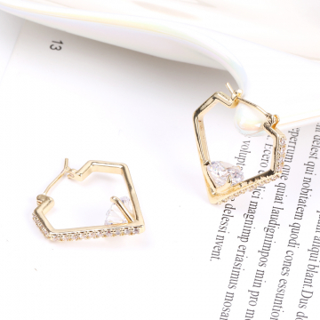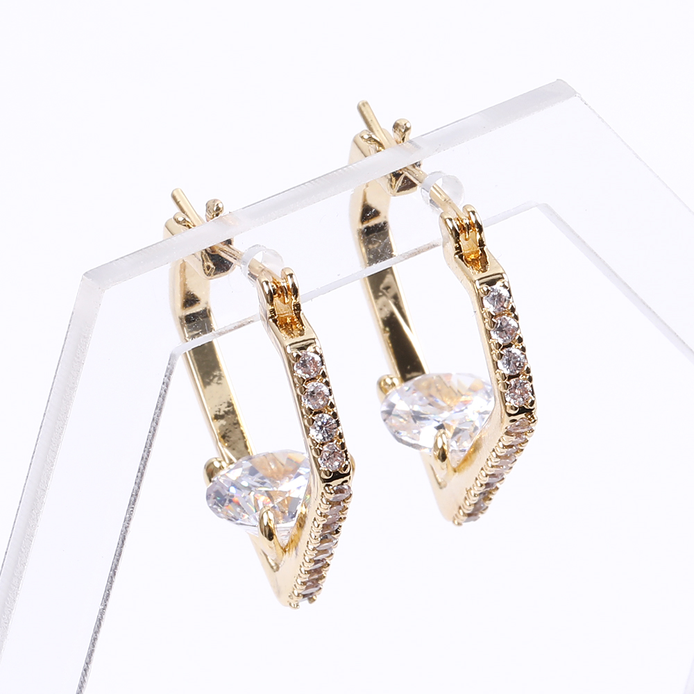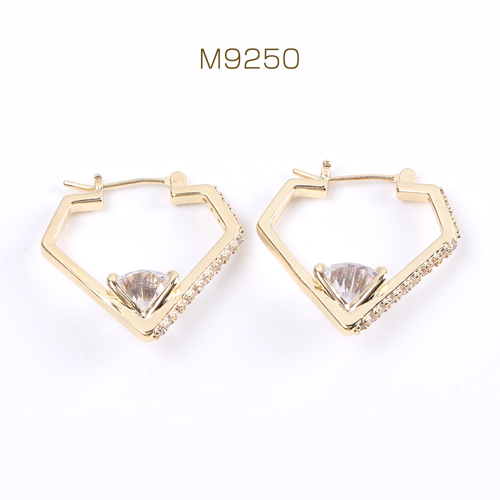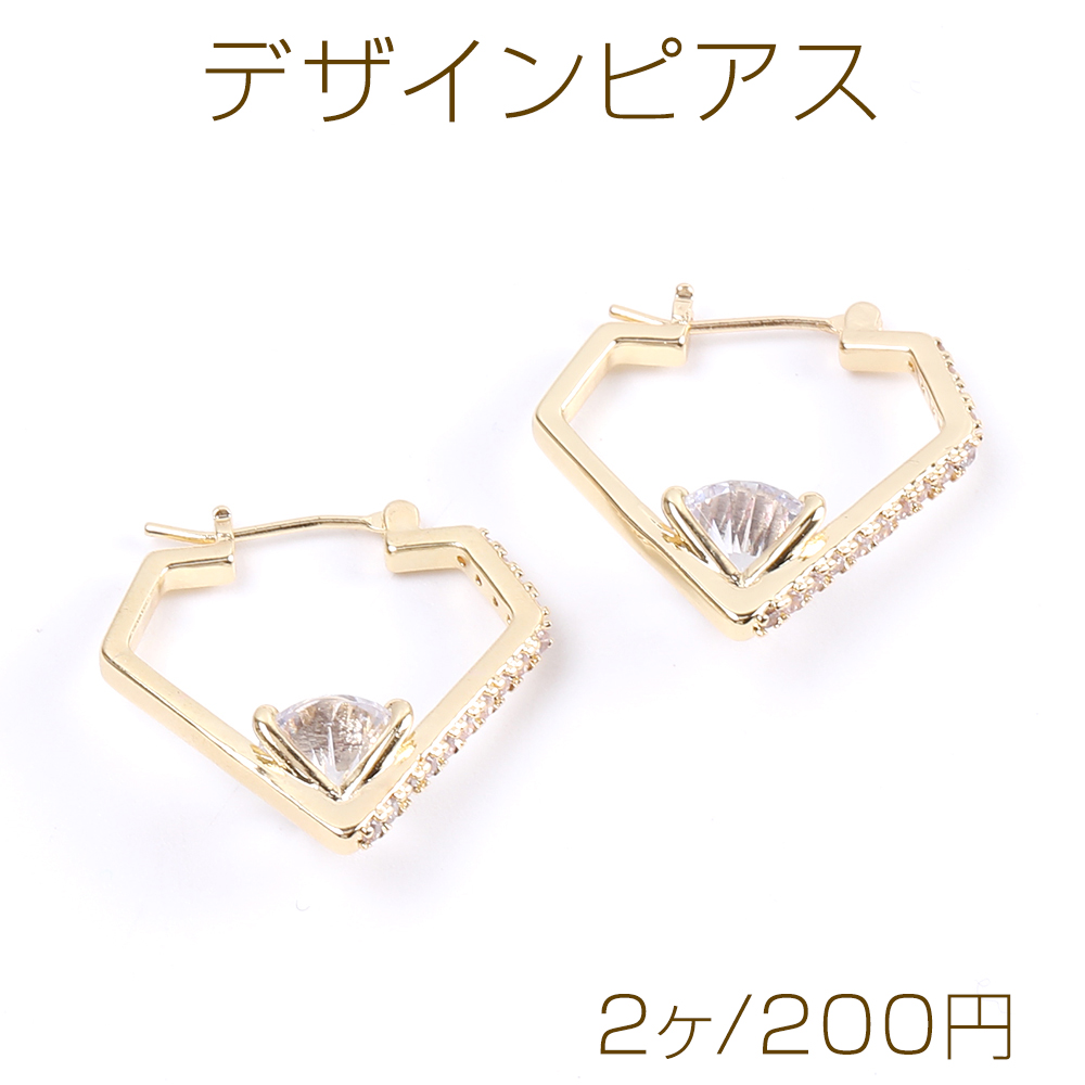 高品質デザインピアス ダイヤ ジルコニア付き 24×24mm ゴールド(2ヶ)